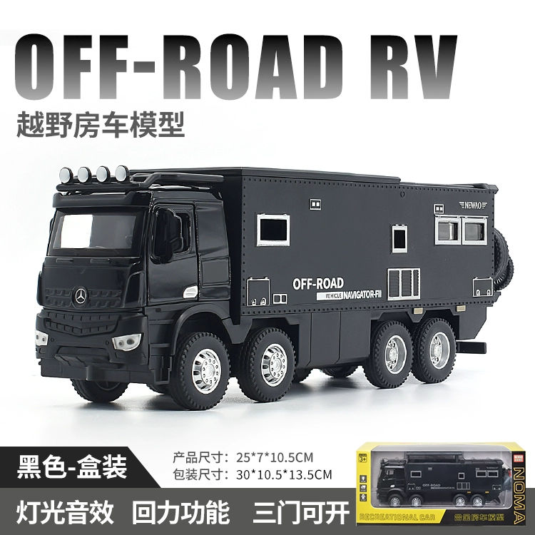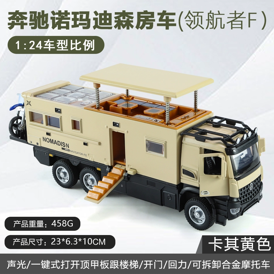 Large Mercedes-Benz Norma Dison alloy RV model pull back sound and light toy off-road vehicle camper transport truck