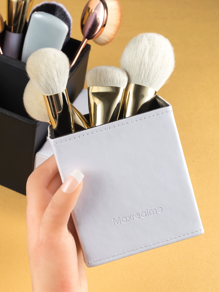 | nameOriginal | Large opening and closing leather cosmetic brush barrel magnetically attached cosmetic brush storage box with cover dust-proof portable brush bag |