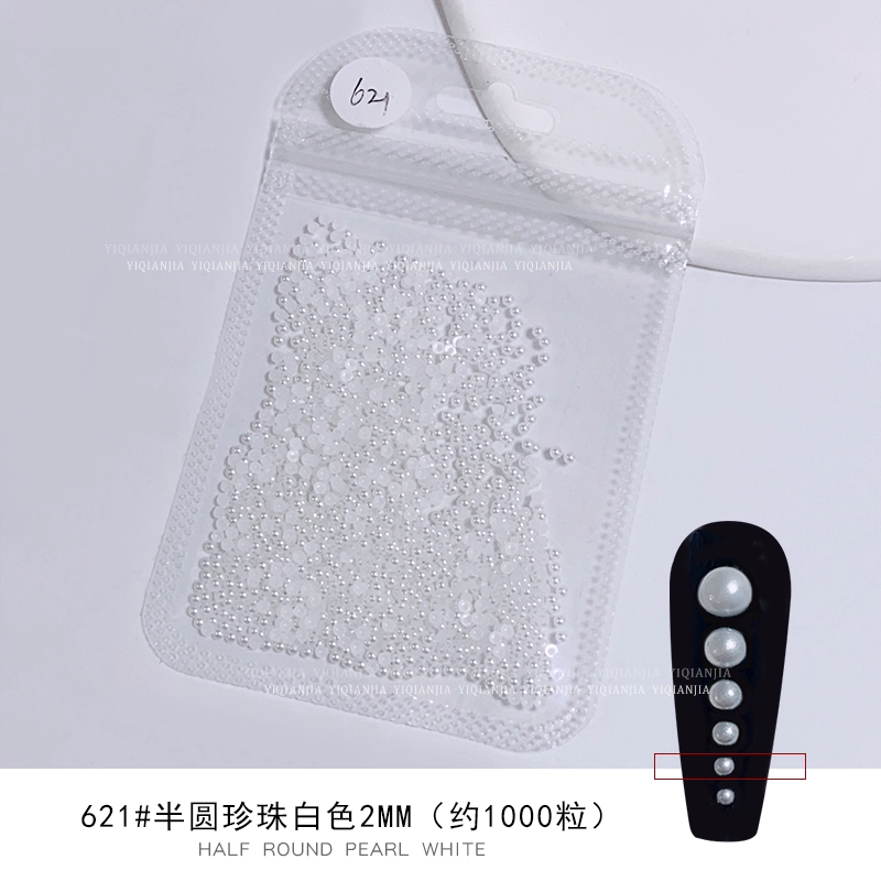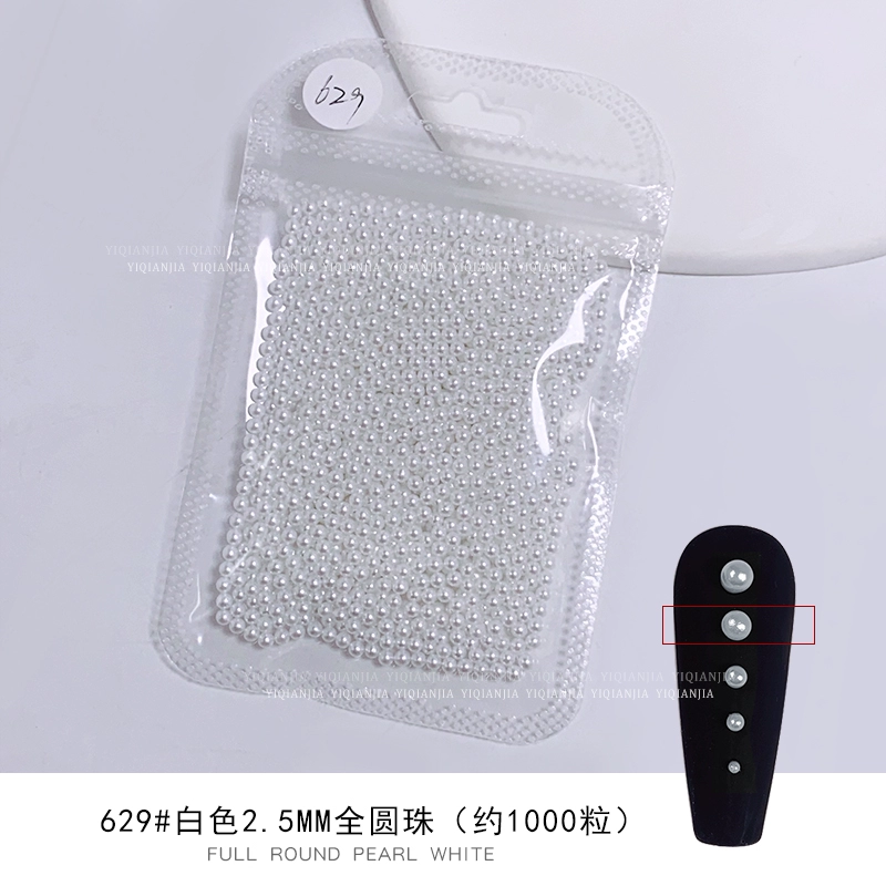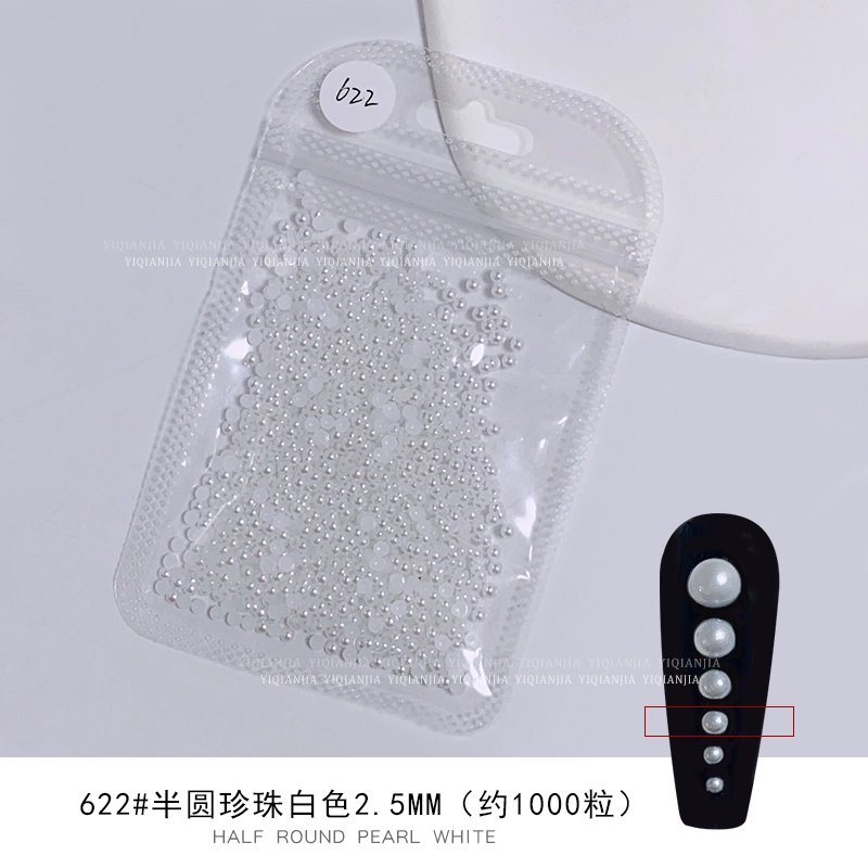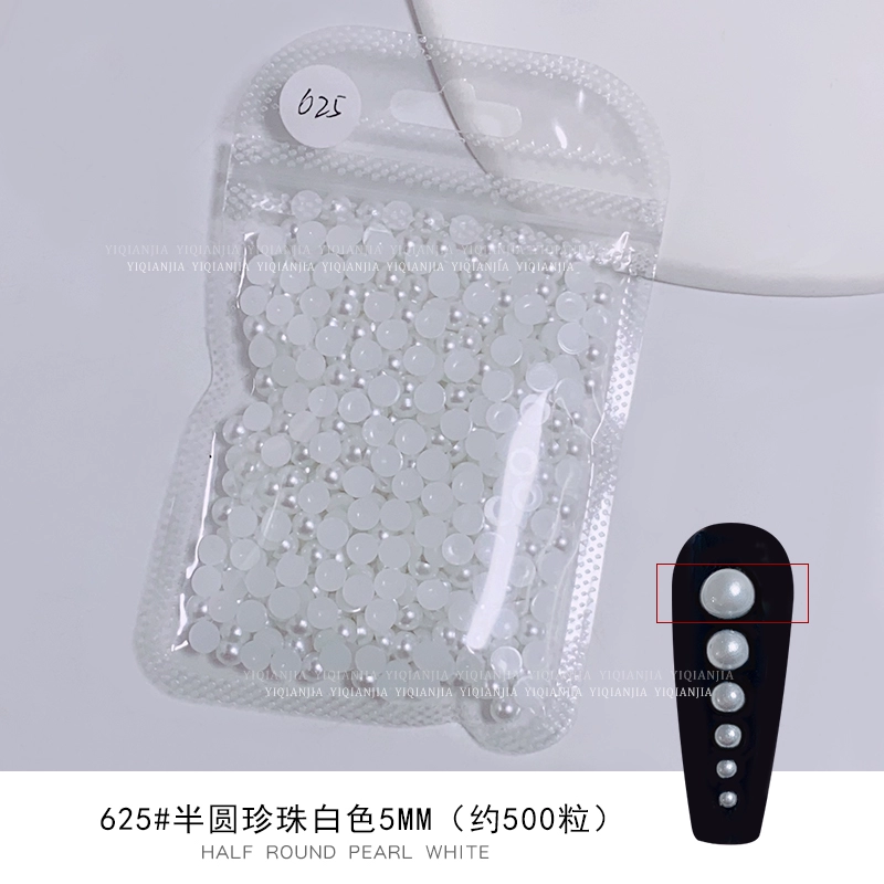 Nail stores use large packaging pure white semi -circular pearls to fully round all rounds, no skin, high bright nail decorations pervasive