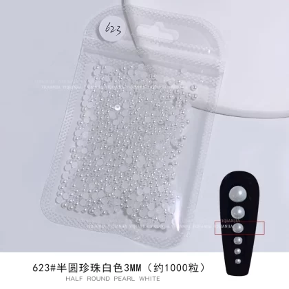 Large package of pure white semi-circle pearls for nail salons, full circle, non-shedding, high-gloss nail decorations, non-porous