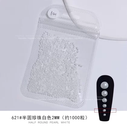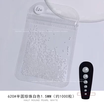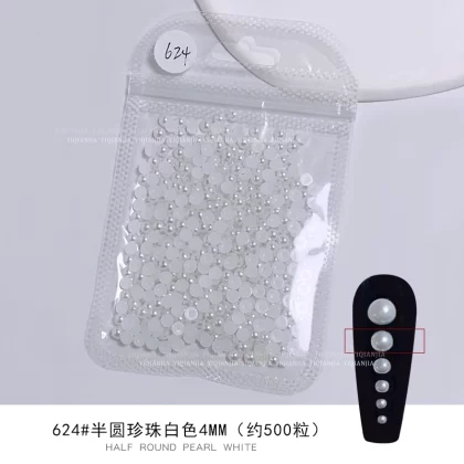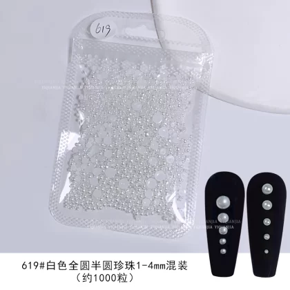 Nail stores use large packaging pure white semi -circular pearls to fully round all rounds, no skin, high bright nail decorations pervasive