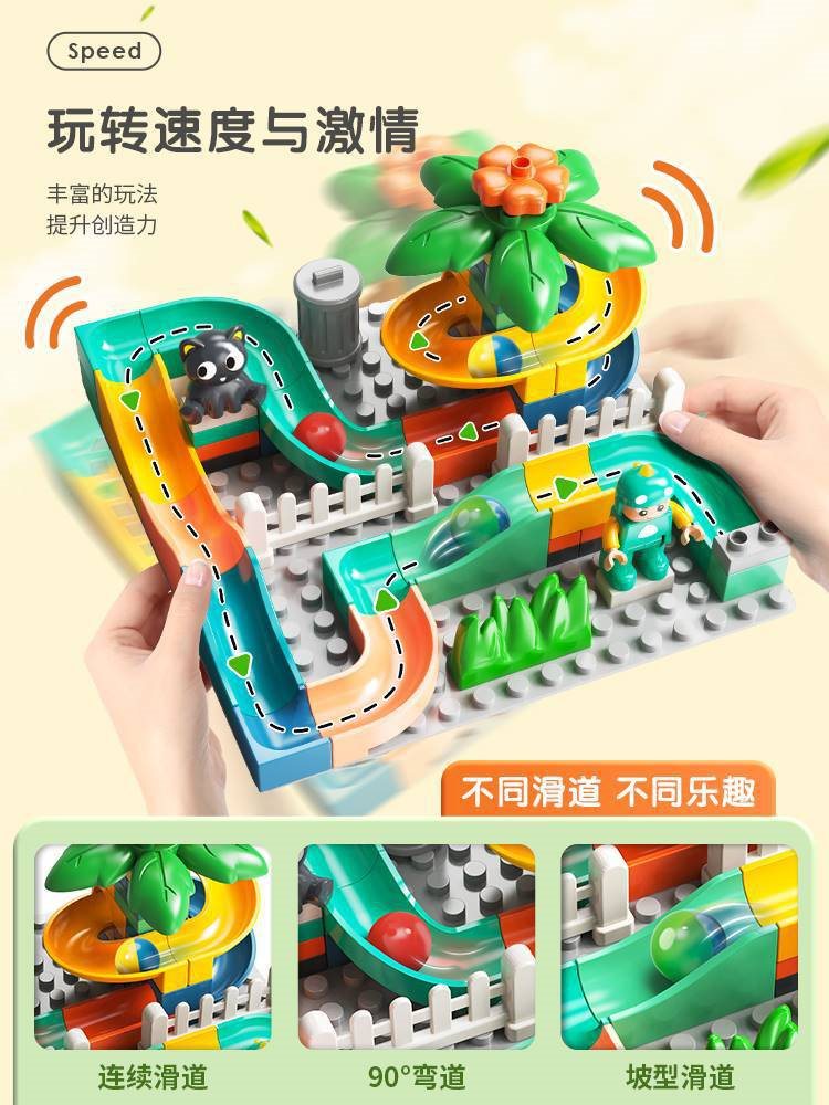 Large Particle Animal Slide Building Blocks Assembled Power Electric Small Ball Ball Variety Circulating Track Children's Toys