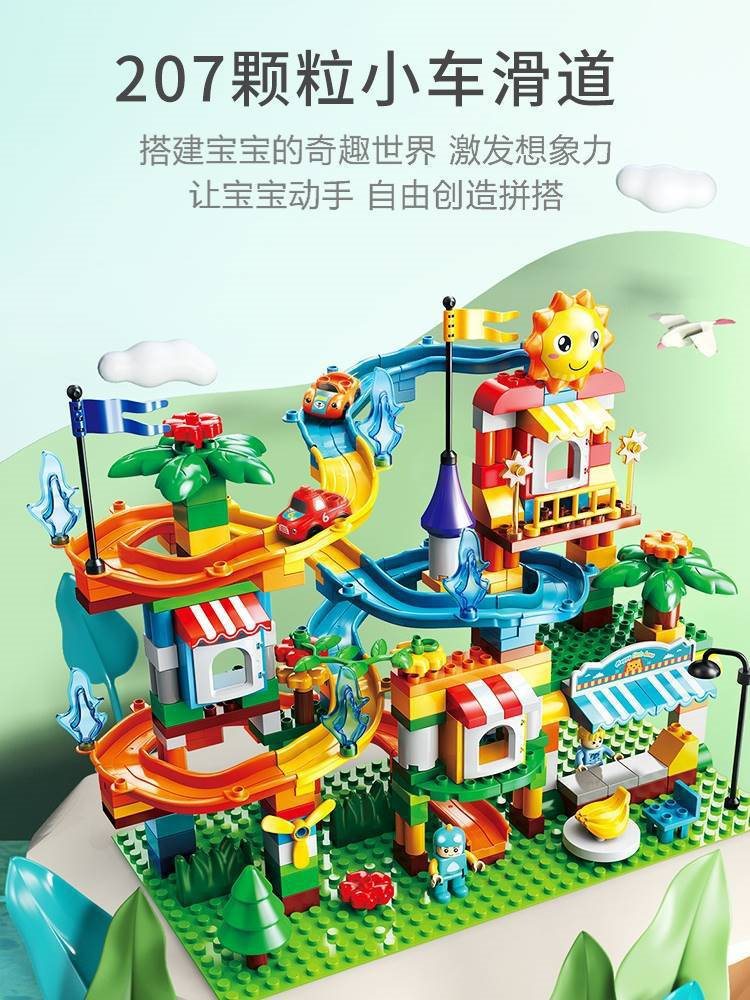 Large Particle Animal Slide Building Blocks Assembled Power Electric Small Ball Ball Variety Circulating Track Children’s Toys
