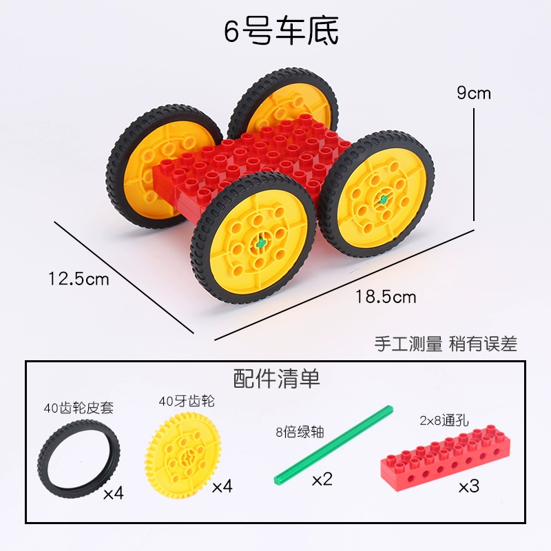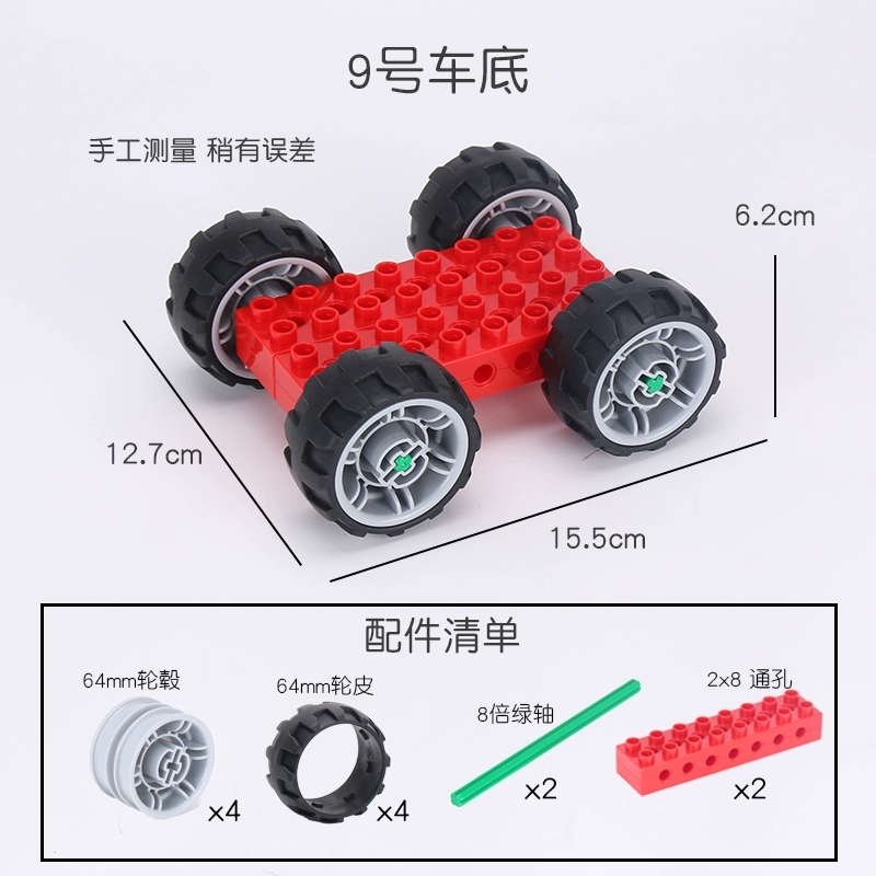 | nameOriginal | Large particle gear frame bottom wheel hub tire versatile engineering automobile parts building block toys 9656 teaching aids |