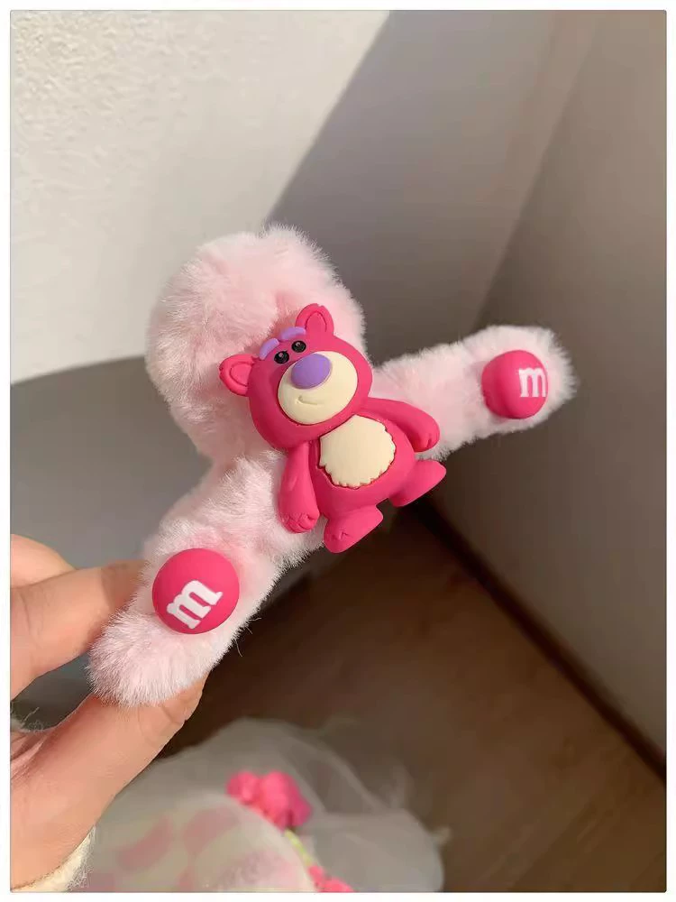 | nameOriginal | Large pink girl plush hair clip strawberry bear |