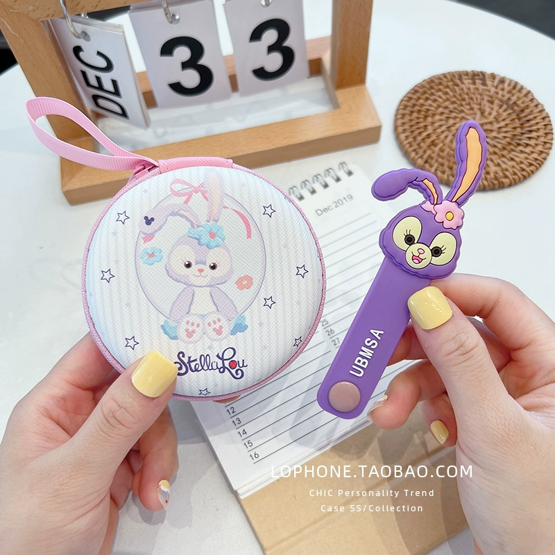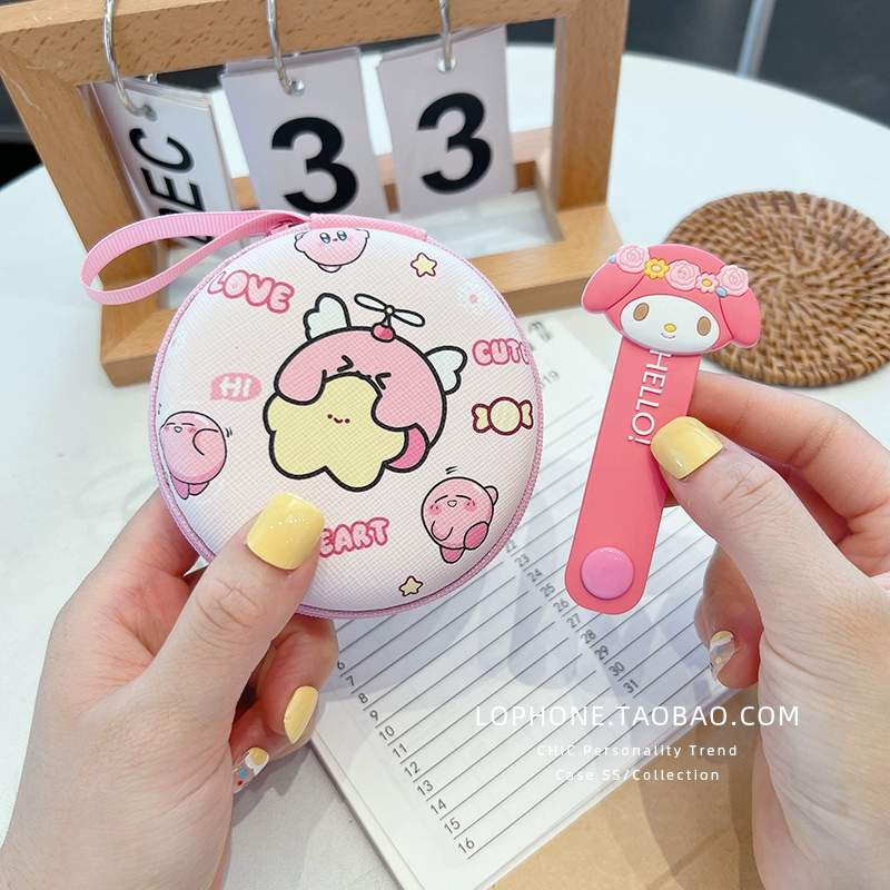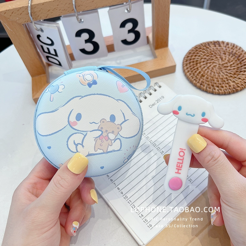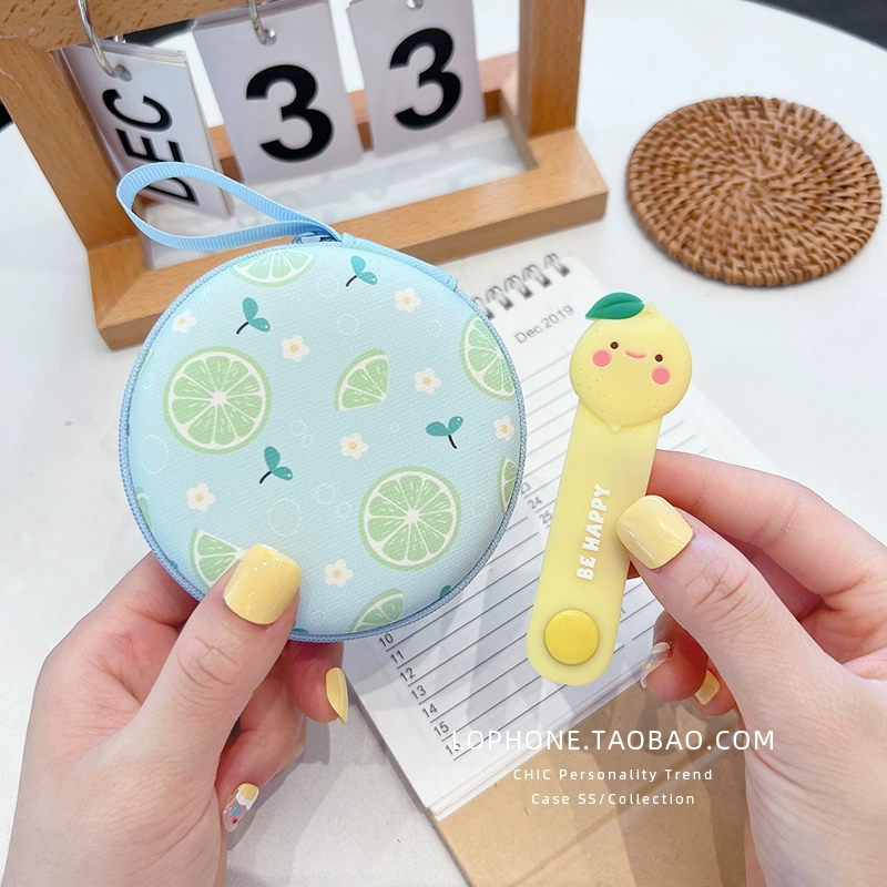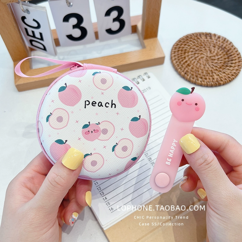 Large circular storage box mobile phone charger headset headset data cable portable storage bag cute cartoon liner box