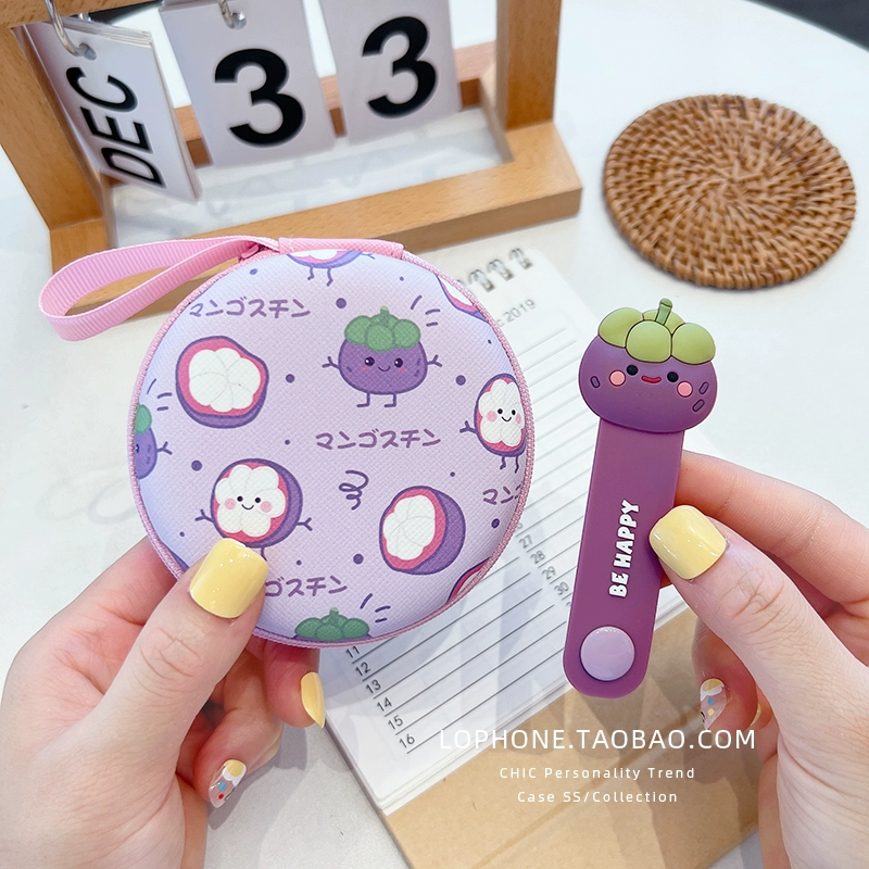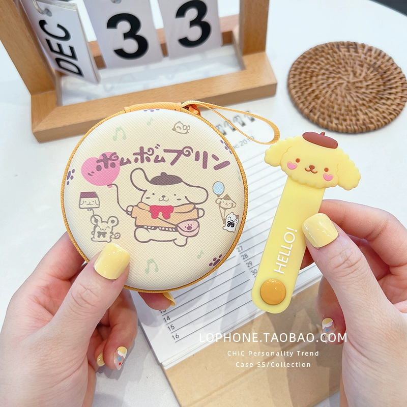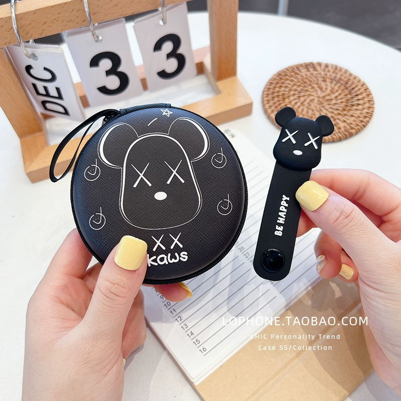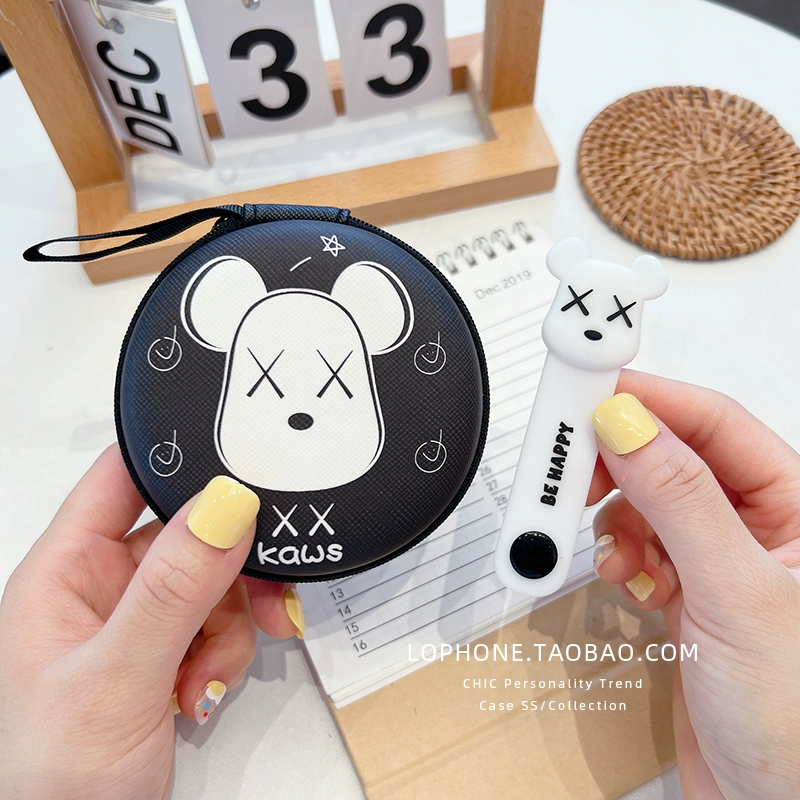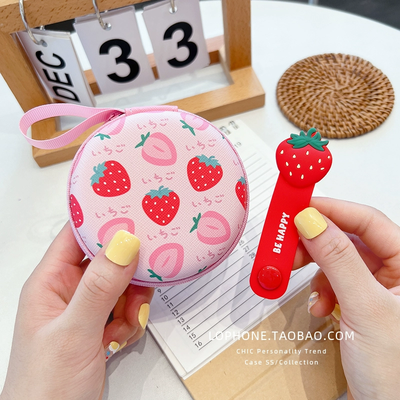 Large circular storage box mobile phone charger headset headset data cable portable storage bag cute cartoon liner box