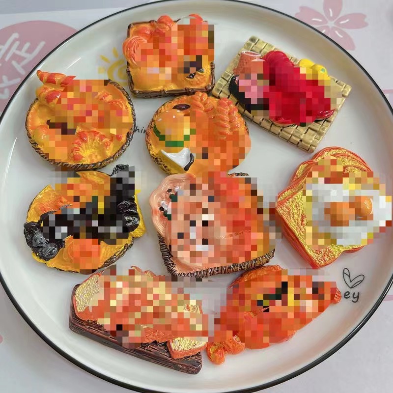 | nameOriginal | Large Simulation Bread Hamburger Lobster Resin Accessories DIY Phone Case Refrigerator Sticker Storage Box Patch Material |