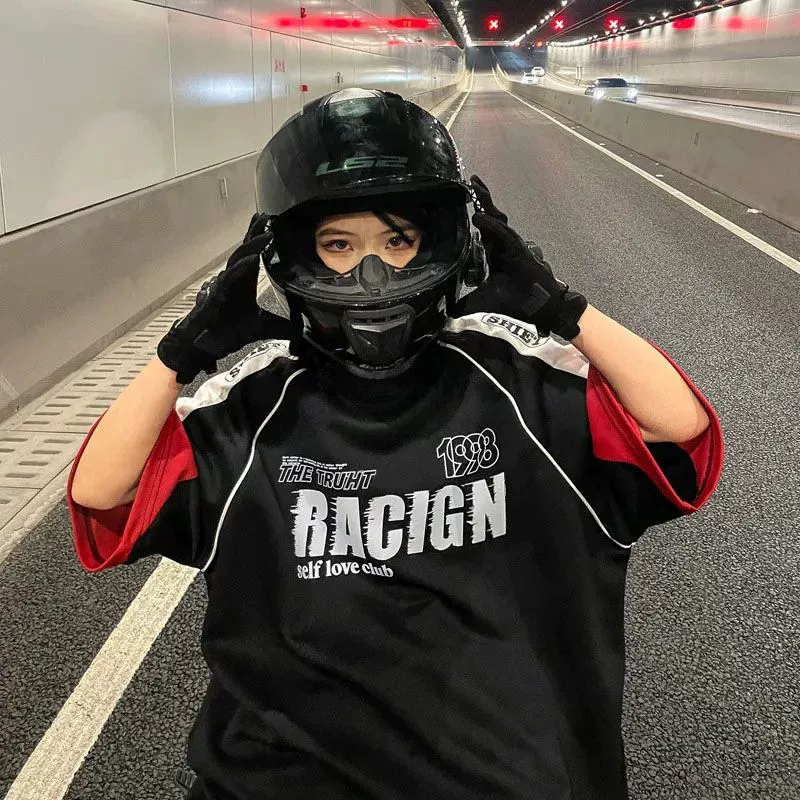 | nameOriginal | Large size 300 pounds American retro high street spliced short-sleeved T-shirt men's heavyweight racing motorcycle suit trendy brand couple wear |
