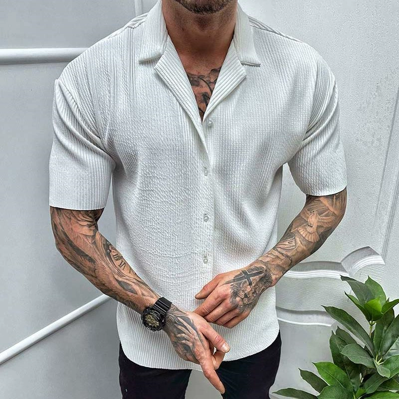 | nameOriginal | Large size 300 pounds Cuban collar shirt men's short-sleeved summer fashion brand high-end thin loose casual drape shirt 2 |