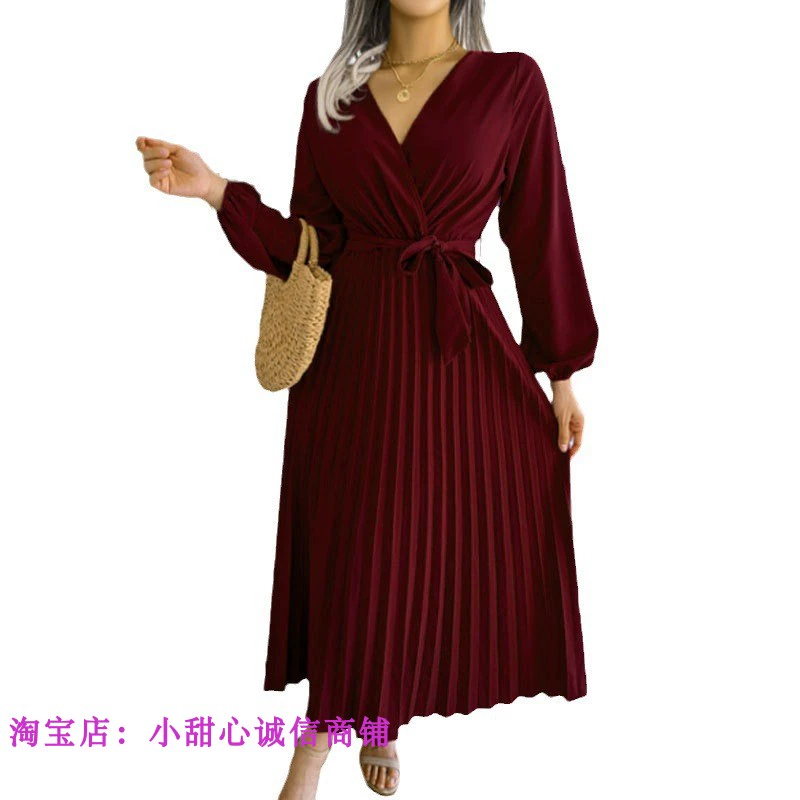 | nameOriginal | Large size 3xl Women Lace up Cross V-neck Large Waist Dress |