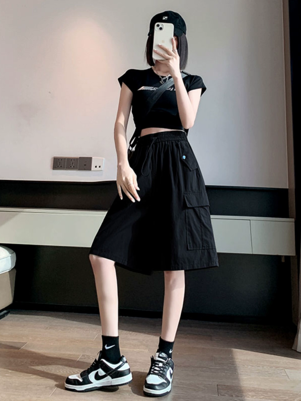 Large size black casual high waist fat MM slim overalls
