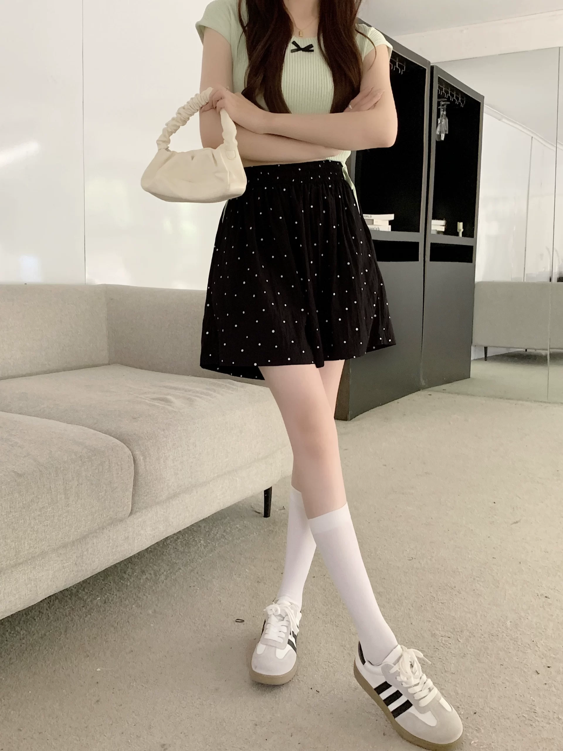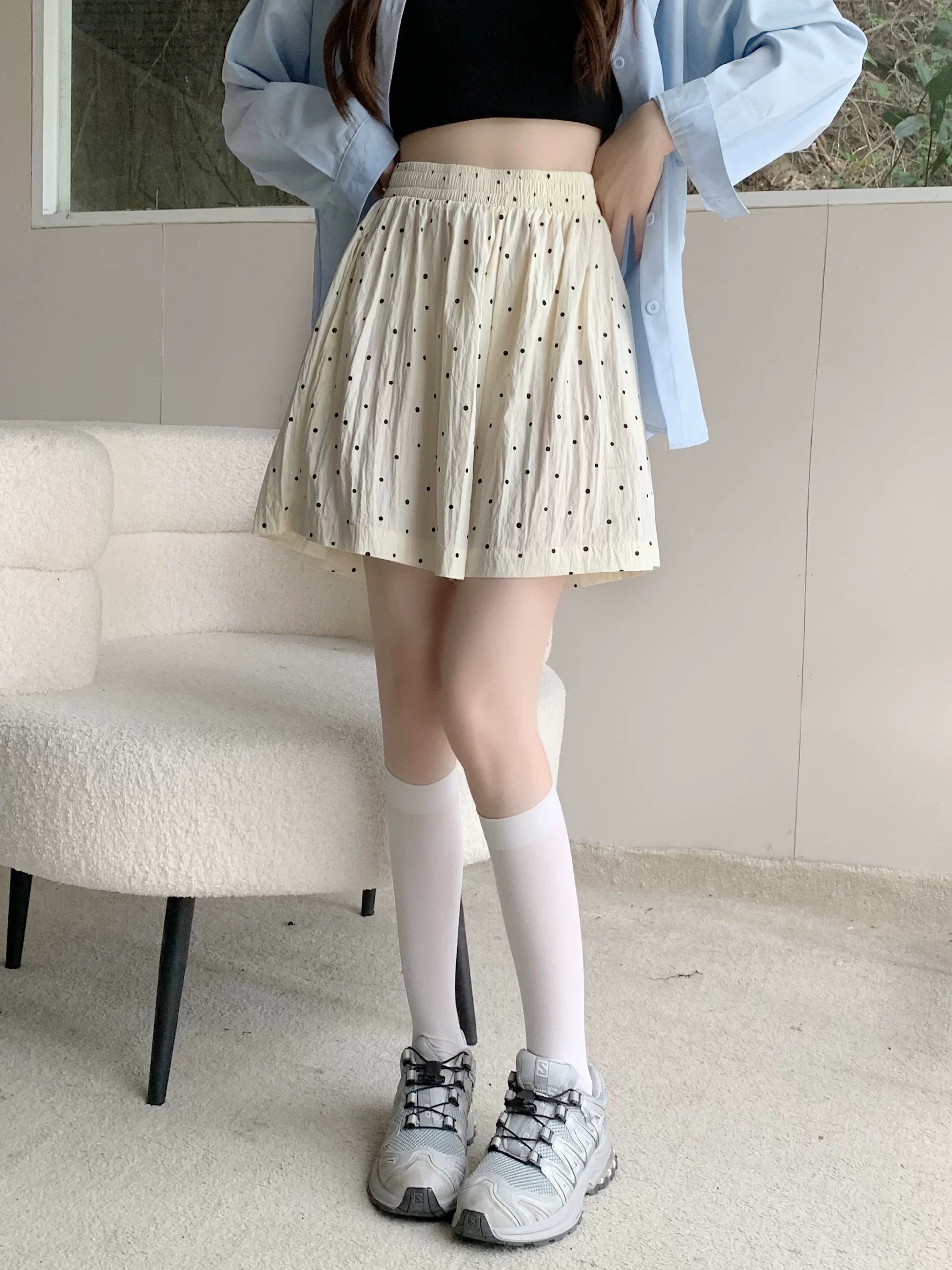| nameOriginal | Large size black polka dot high waist slimming fat MM casual pants |