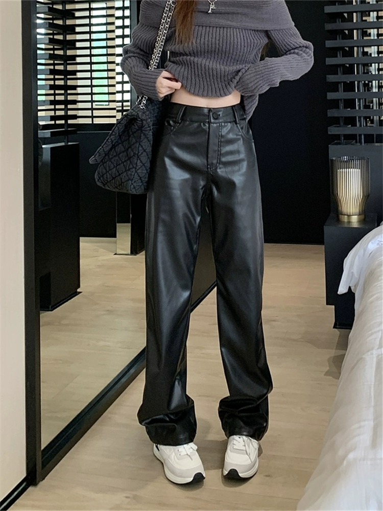 | nameOriginal | Large size black pu leather straight leather pants for women with fat mm new style small high waist wide leg pants casual pants trousers |