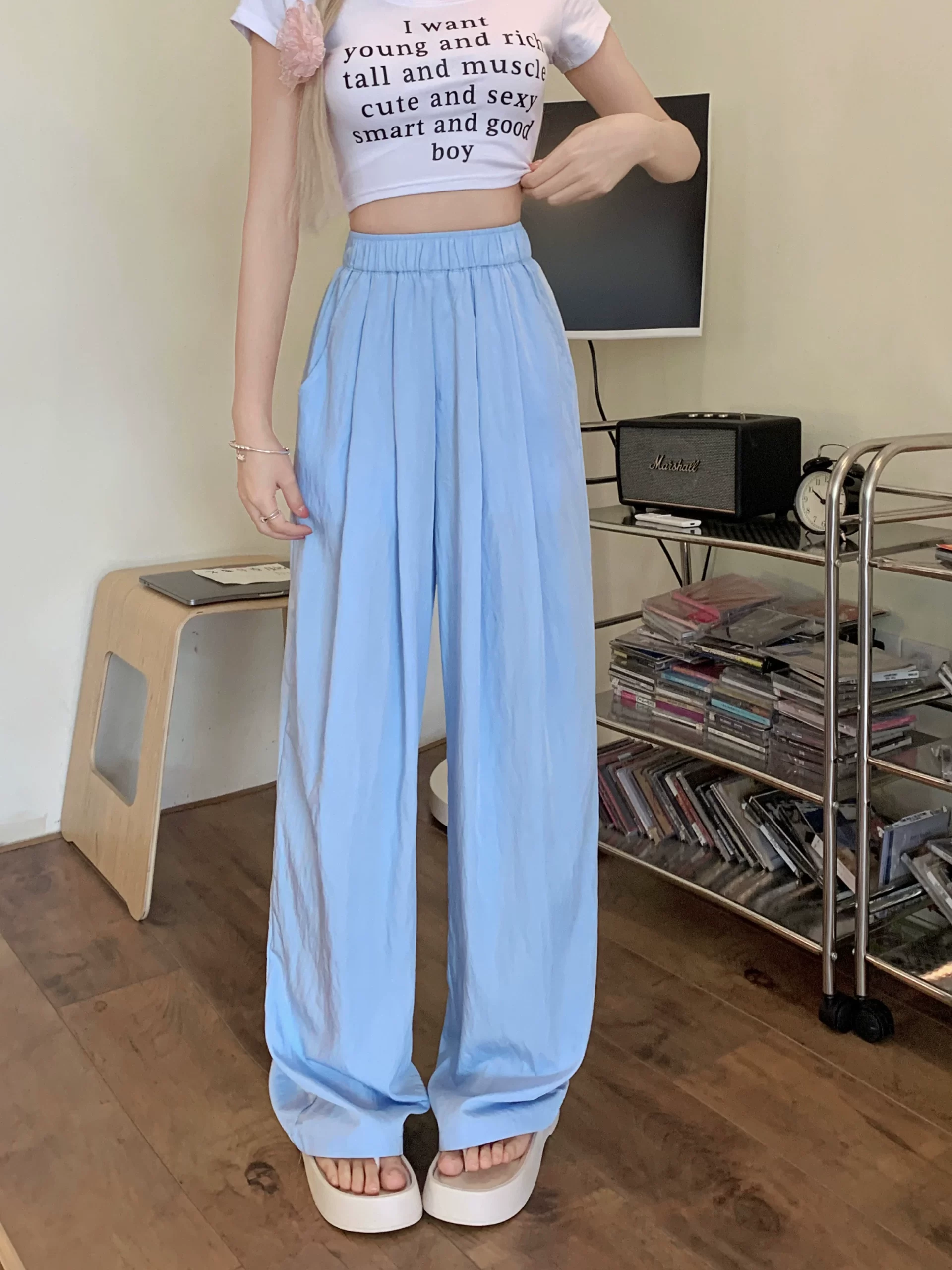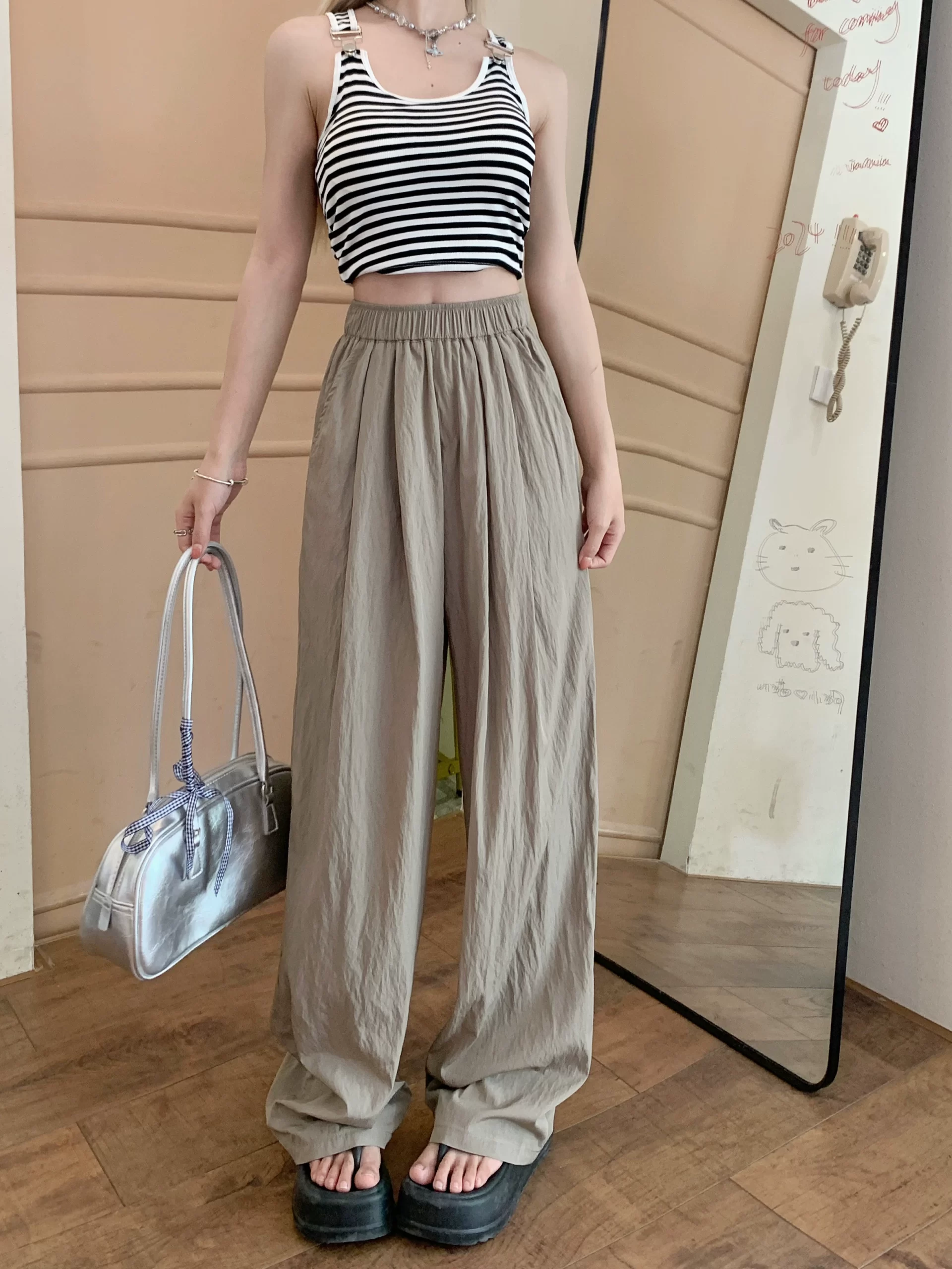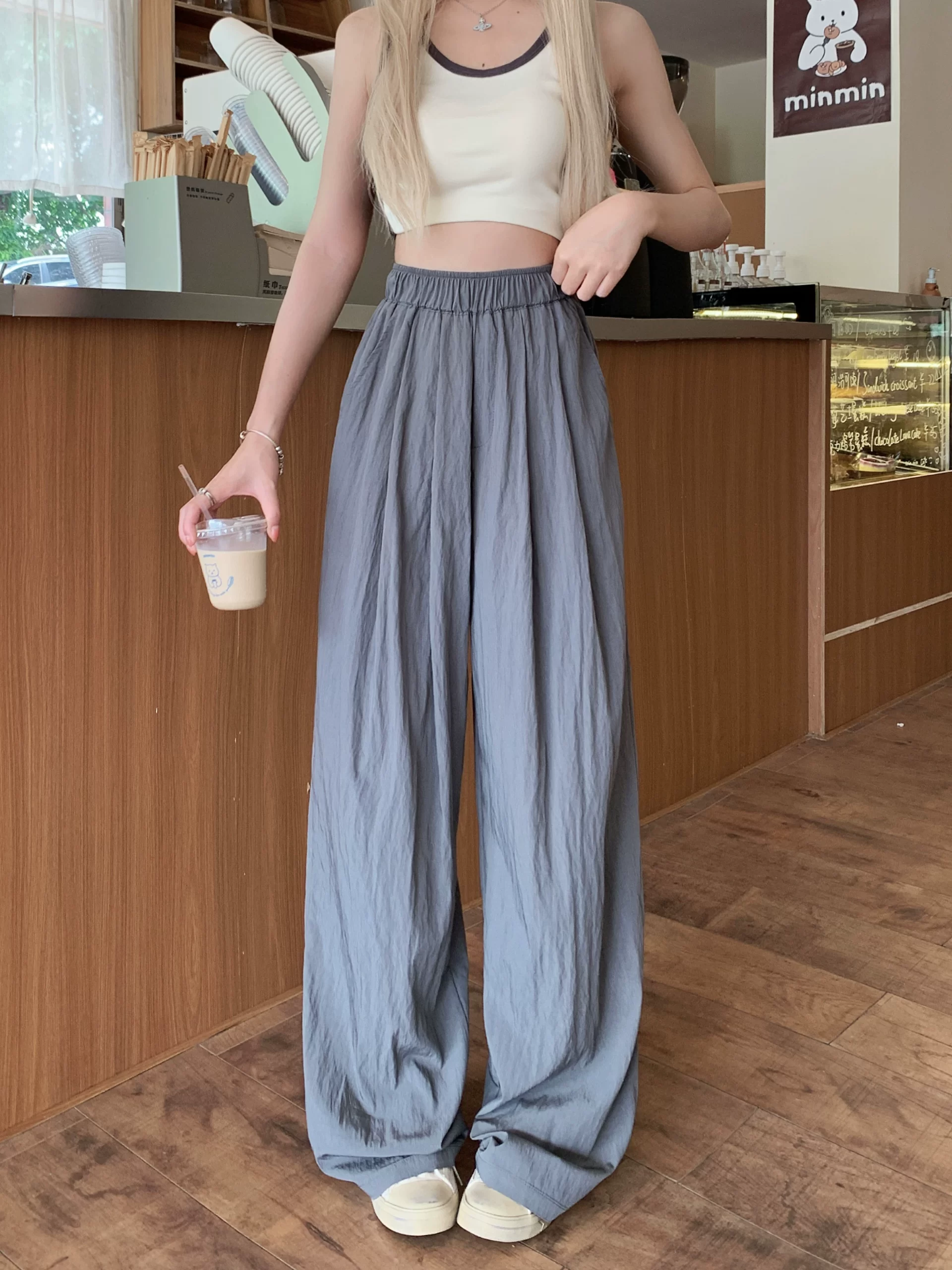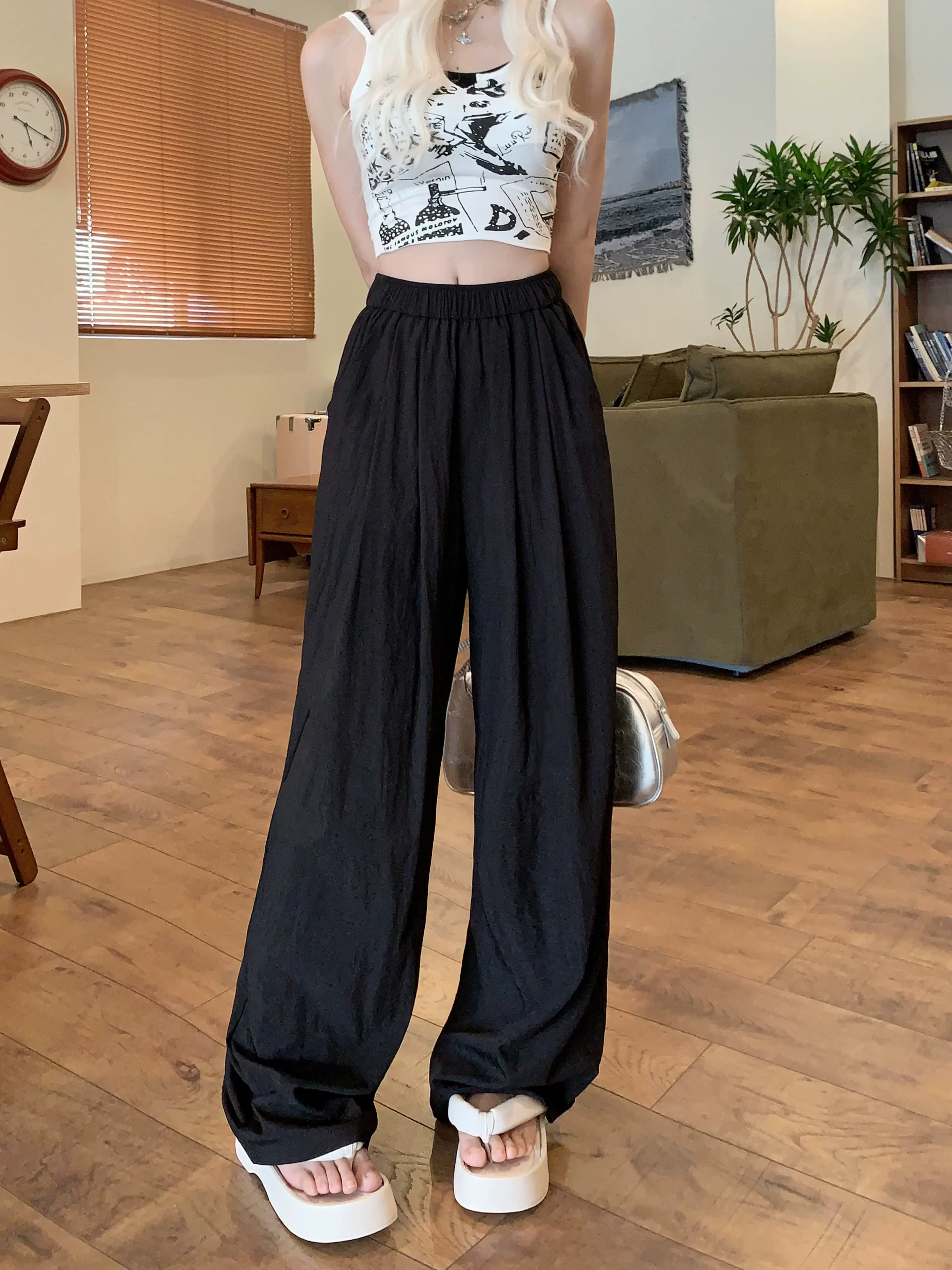 | nameOriginal | Large size casual high-waisted fat MM drapey floor-length wide-leg pants |