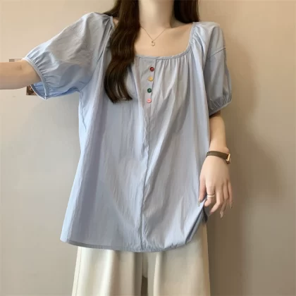 Large size chic and beautiful fat girl loose short-sleeved shirt