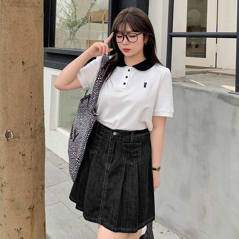 | nameOriginal | Large Size Chubby Girl High Waist Denim Short Skirt Women's Summer Anti-glare American Style Hot Girl A- shape Pleated Skirt 210182 |