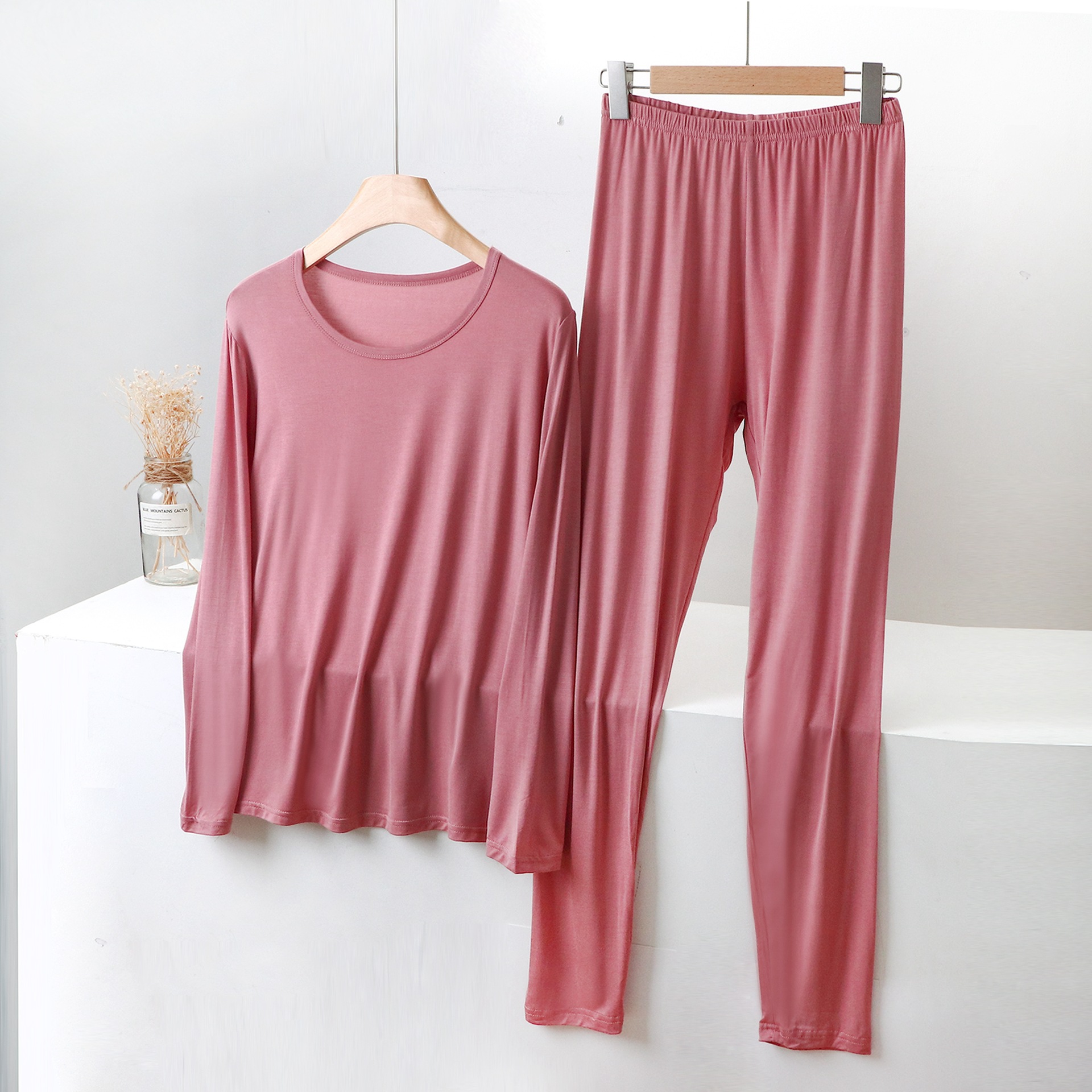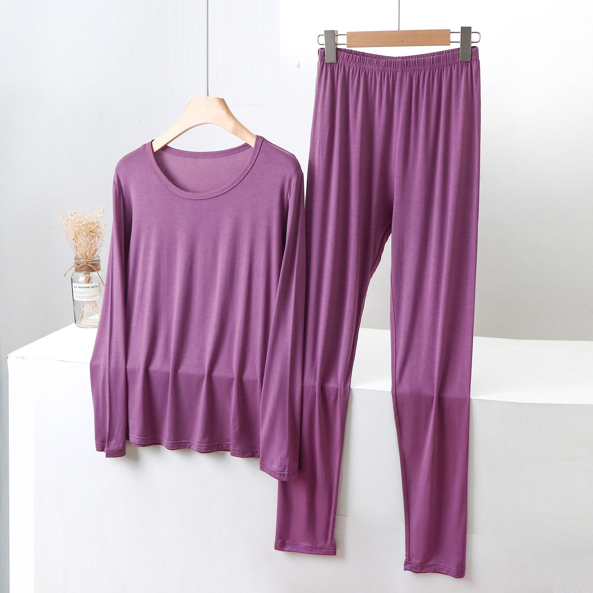 Large Size Chubby Girl Women’s Modal Autumn Clothes and Pants Set Slim-Fit Thin Base Solid Color Thermal Underwear Line and Pants