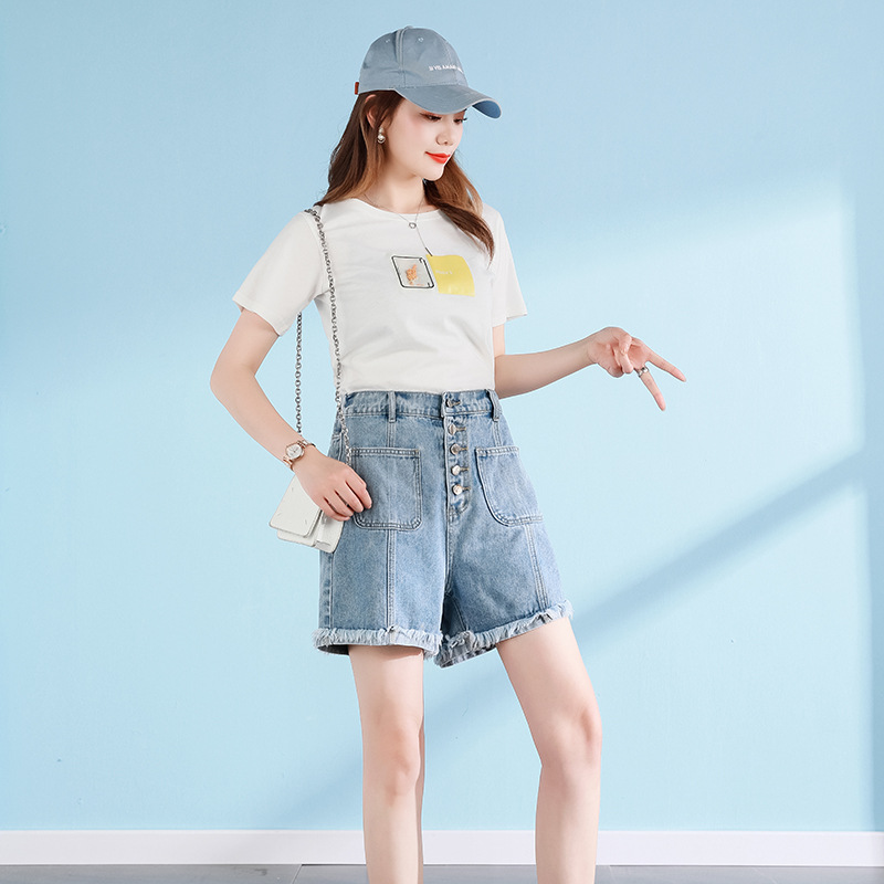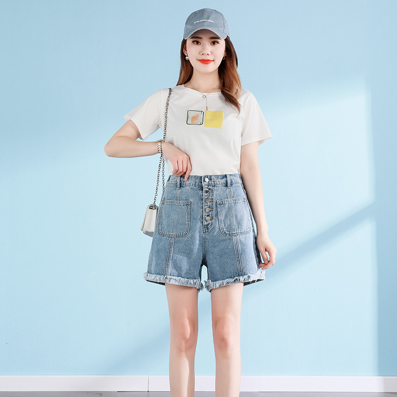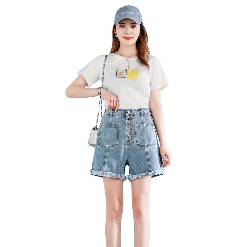 | nameOriginal | Large size denim shorts women's 2024 summer Korean version of the latest high waist slimming loose rough wide leg pants trendy d001 |