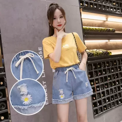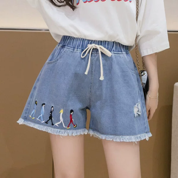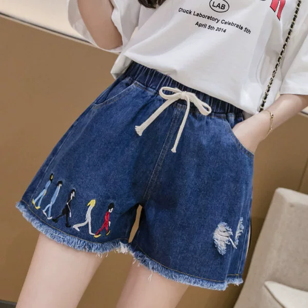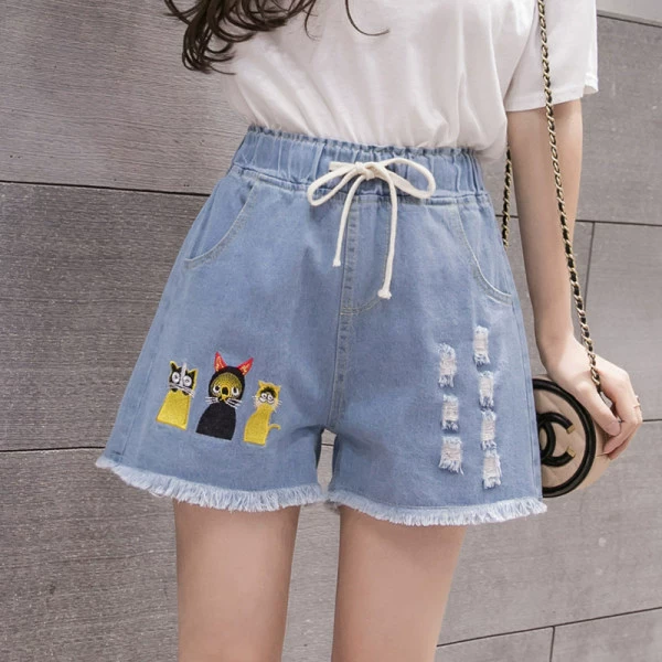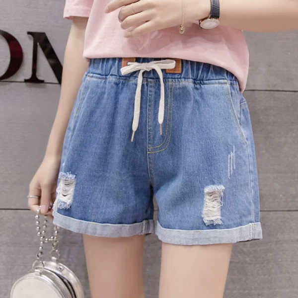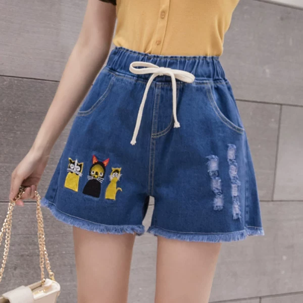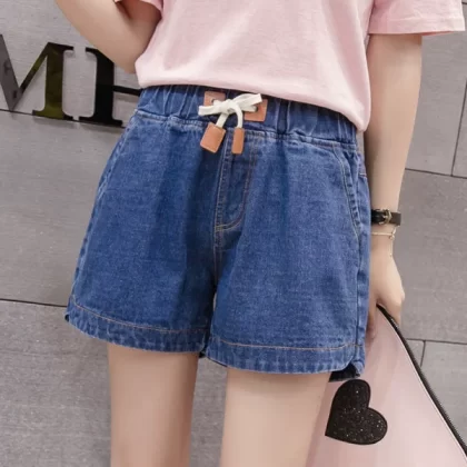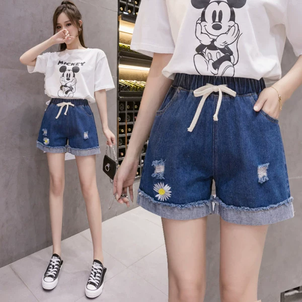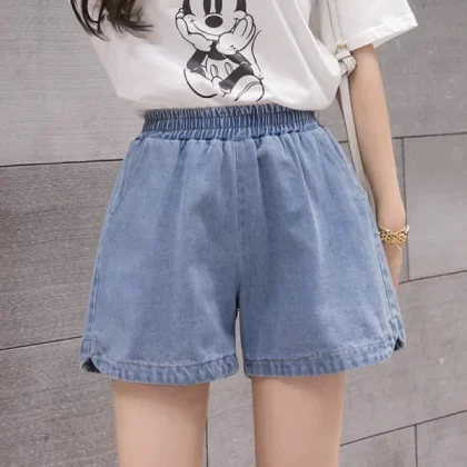 Large size elastic waist denim shorts for fat girls 2023 summer Korean style loose and versatile slimming wide leg pants for small people