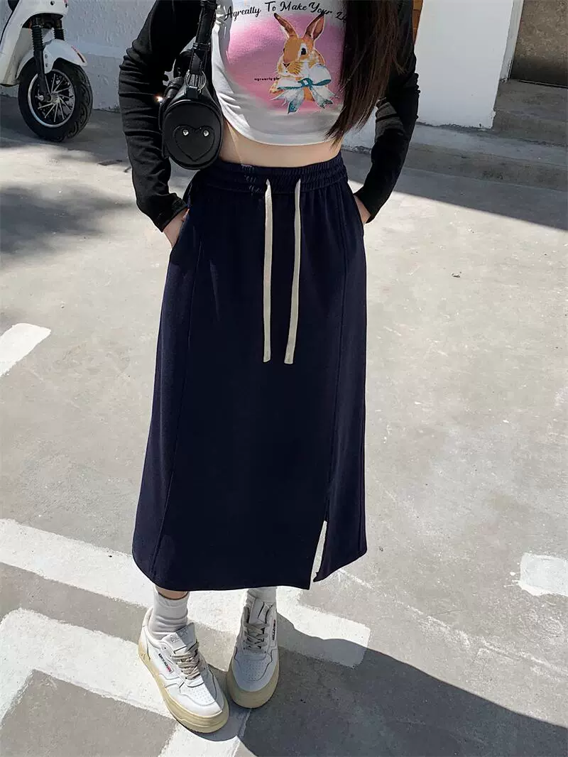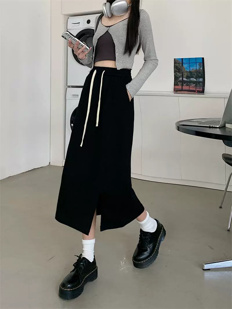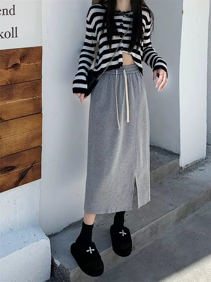 | nameOriginal | Large size gray fat mm belly-covering lace-up skirt |