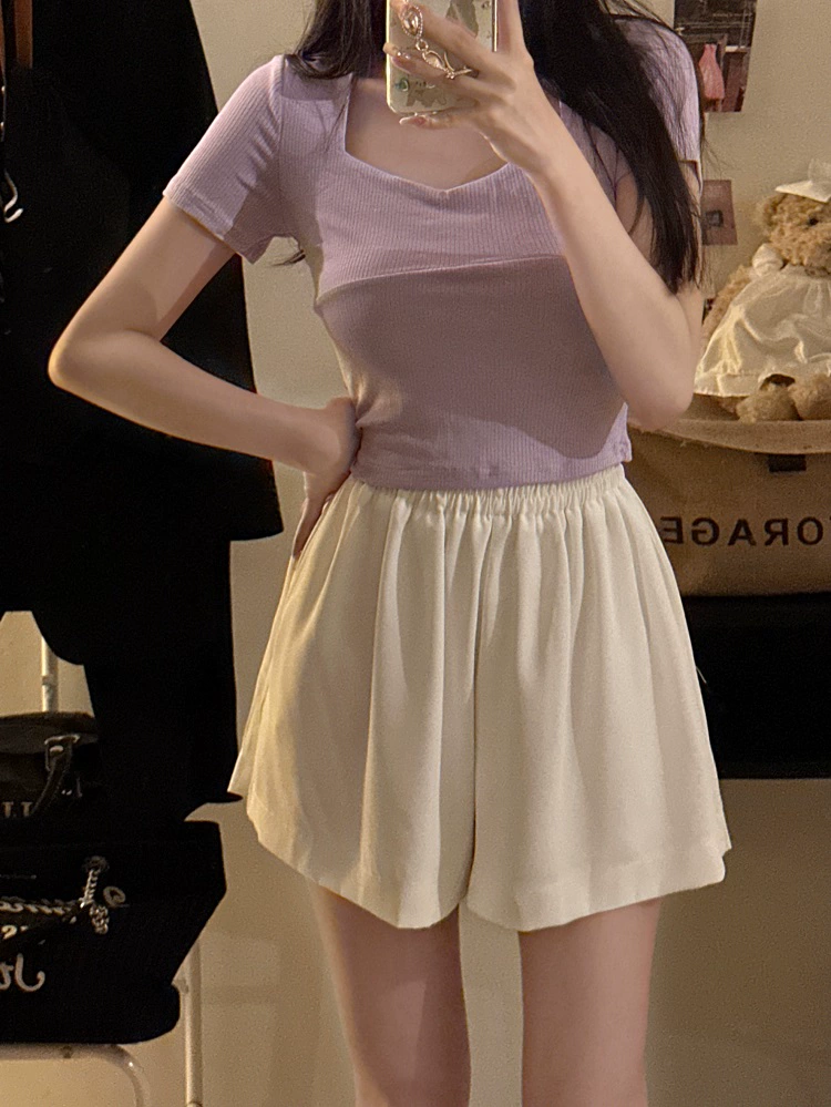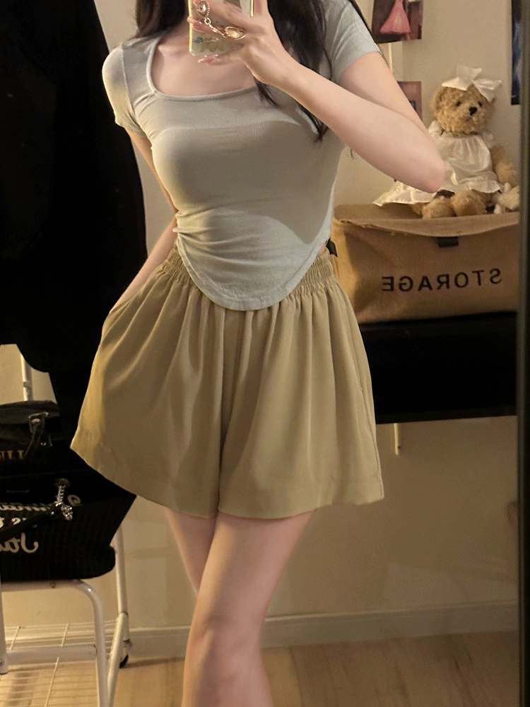 | nameOriginal | Large size high waist fat mm wide leg slimming casual shorts |