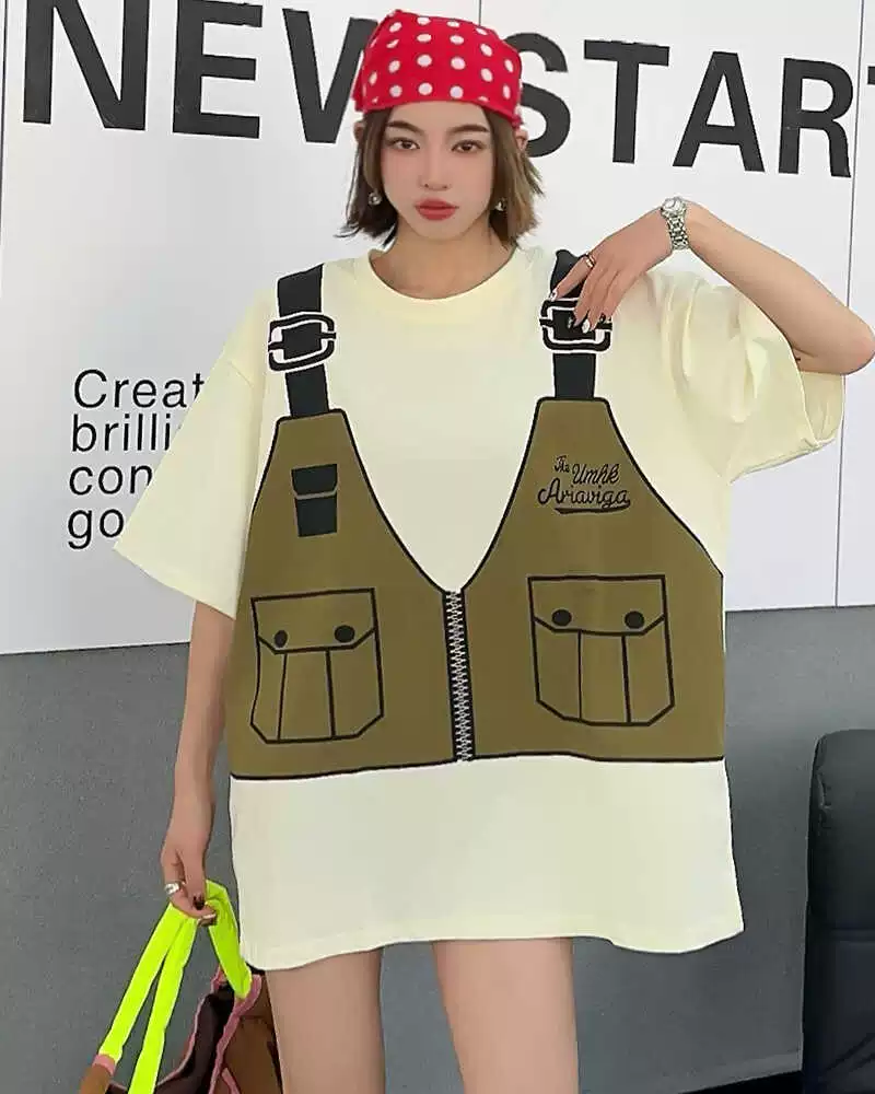 | nameOriginal | Large size interesting design niche short-sleeved T-shirt women's mid-length loose casual style fashionable age-reducing half-sleeved trendy T-shirt |