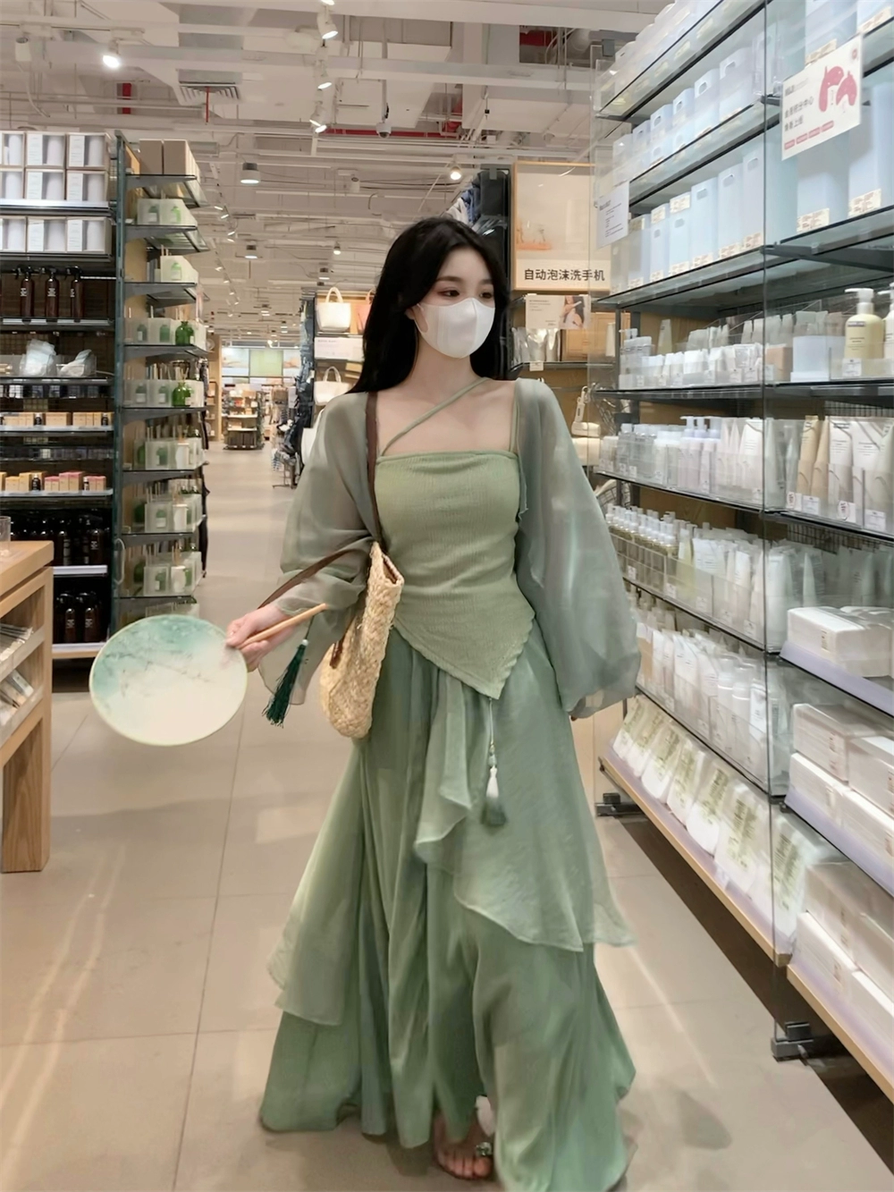Large size irregular slimming flesh-covering suit fat mm top