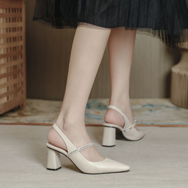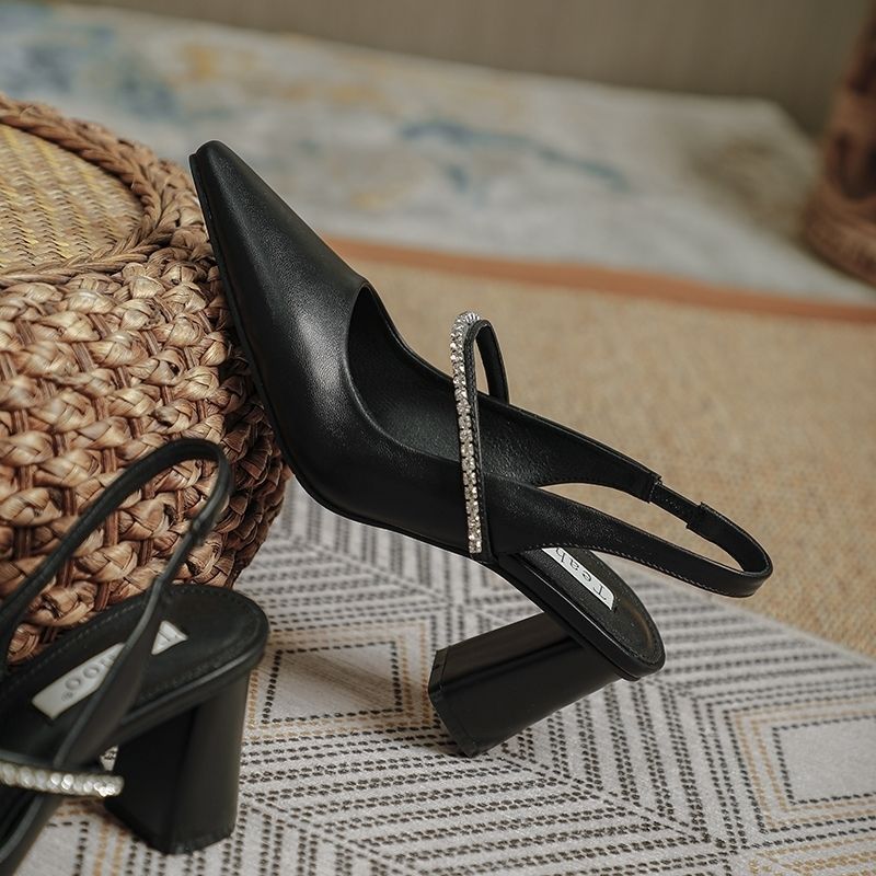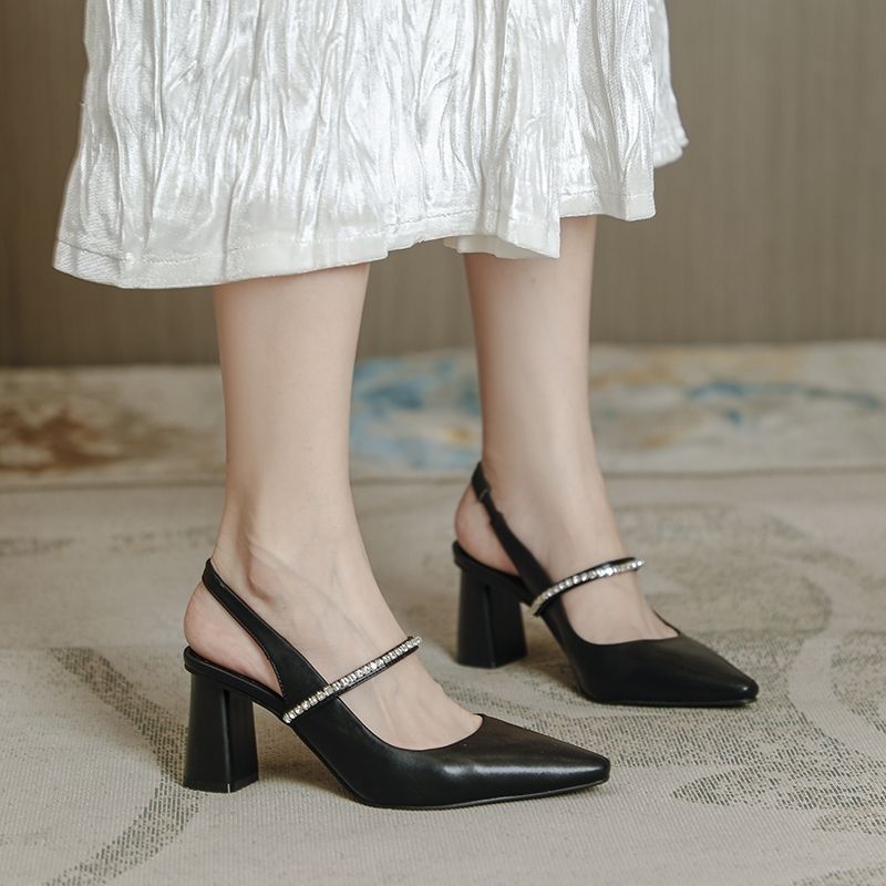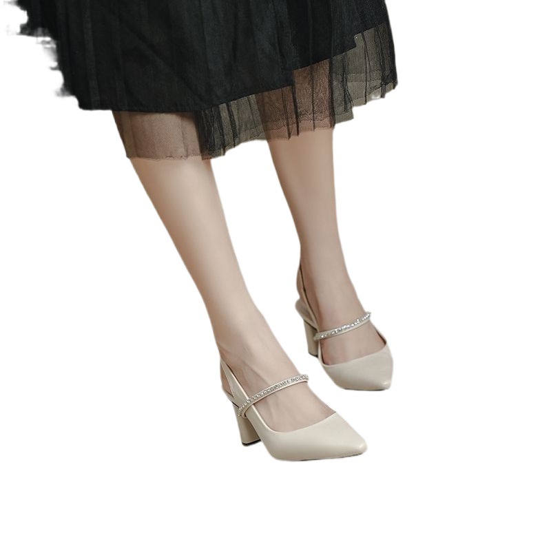 Large Size Late Evening Breeze Summer Mary Jane Girl All-match One-character Rhinestone High Heel Thick Heel Shoes with Skirt Toe Sandals