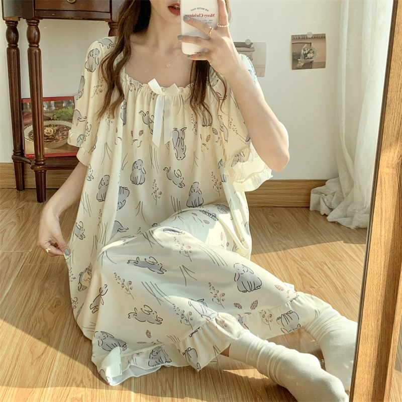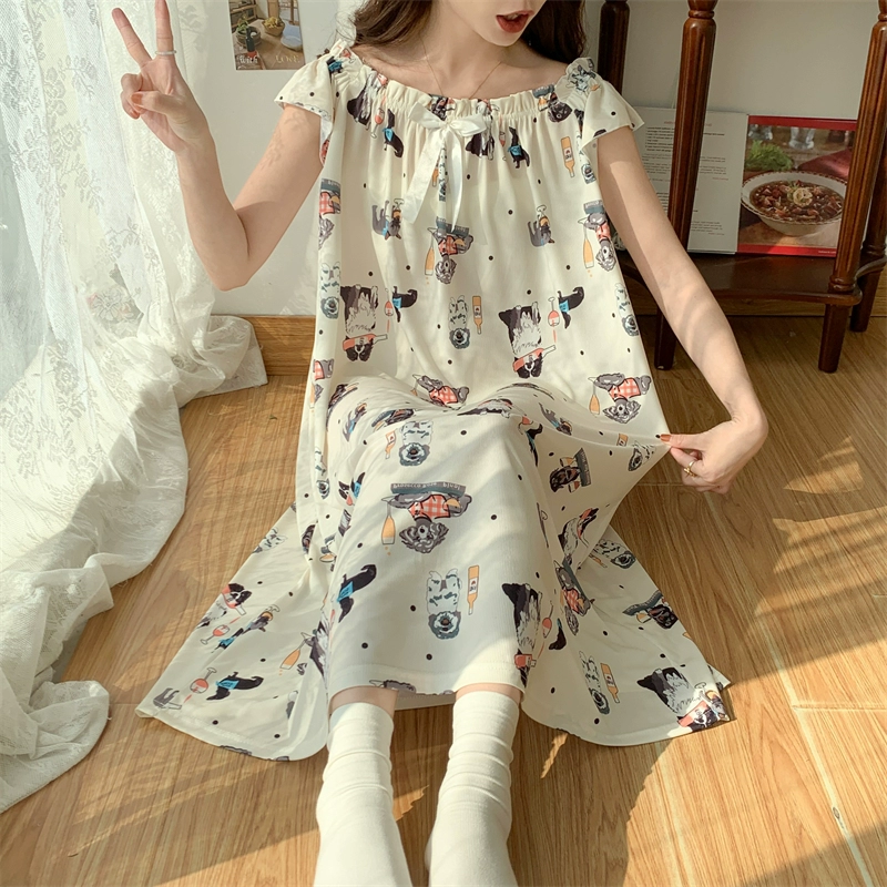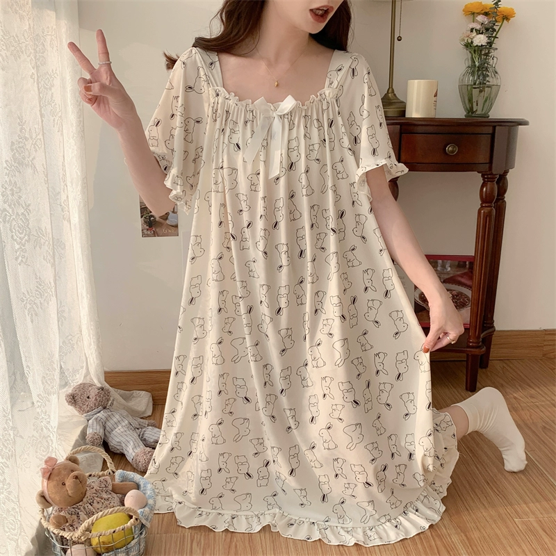 | nameOriginal | Large size nightgown for women summer thin cool ice silk fat girl 200 pounds large size cute cartoon student nightgown dress |