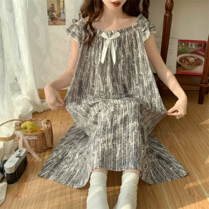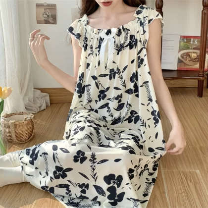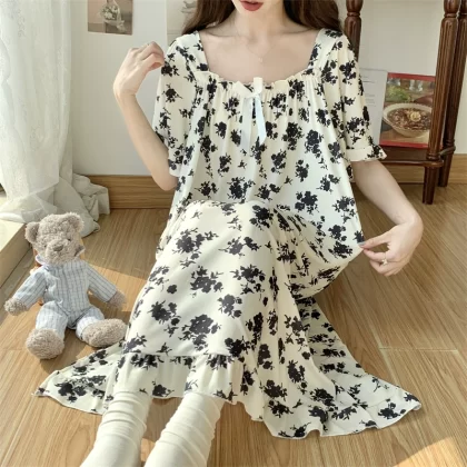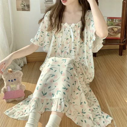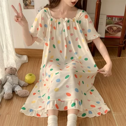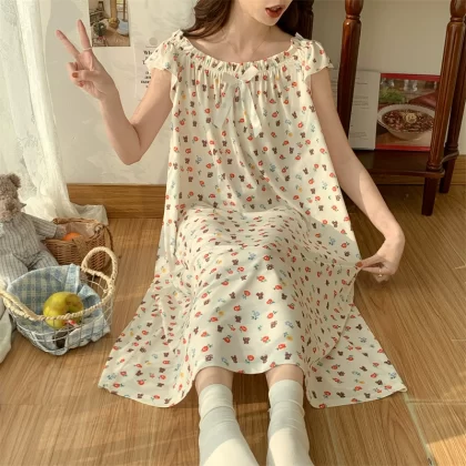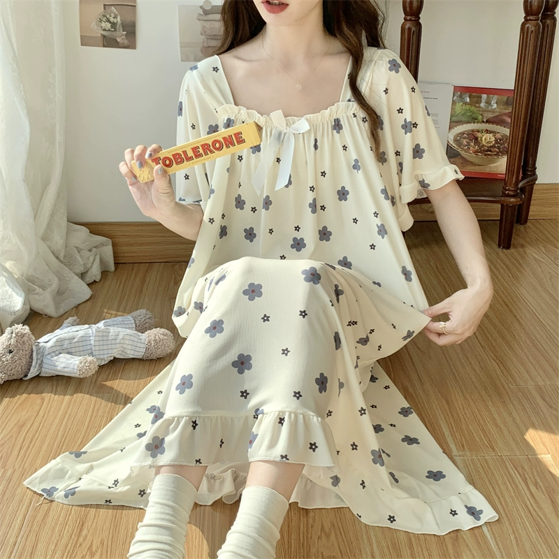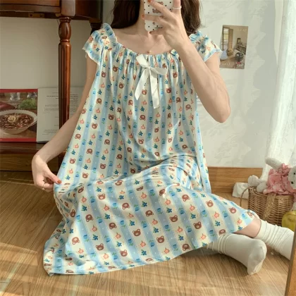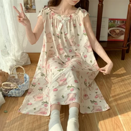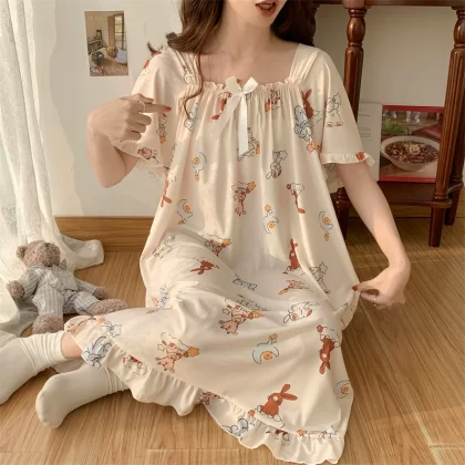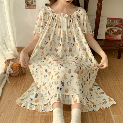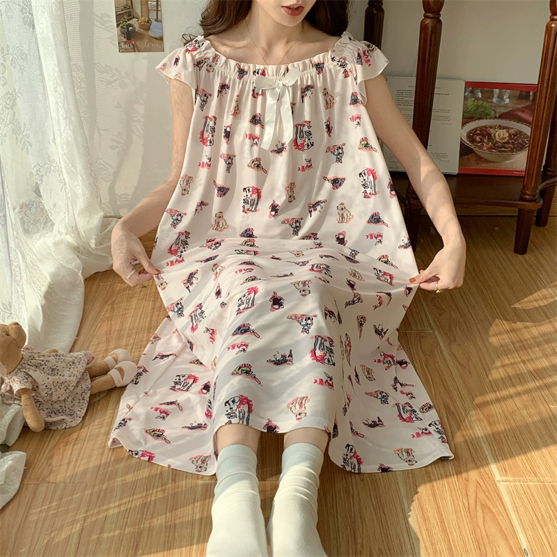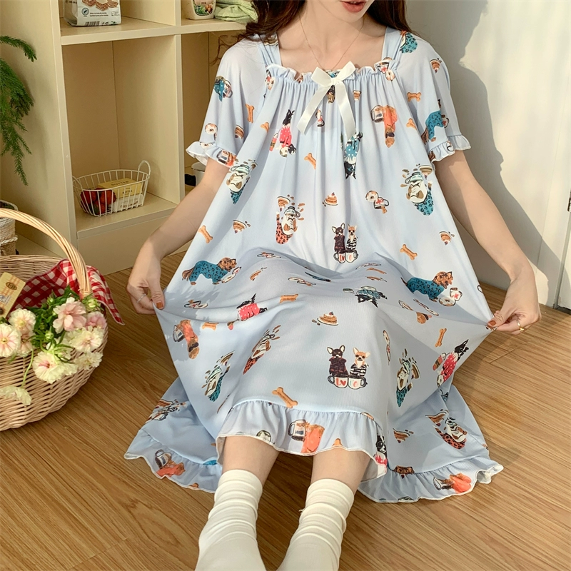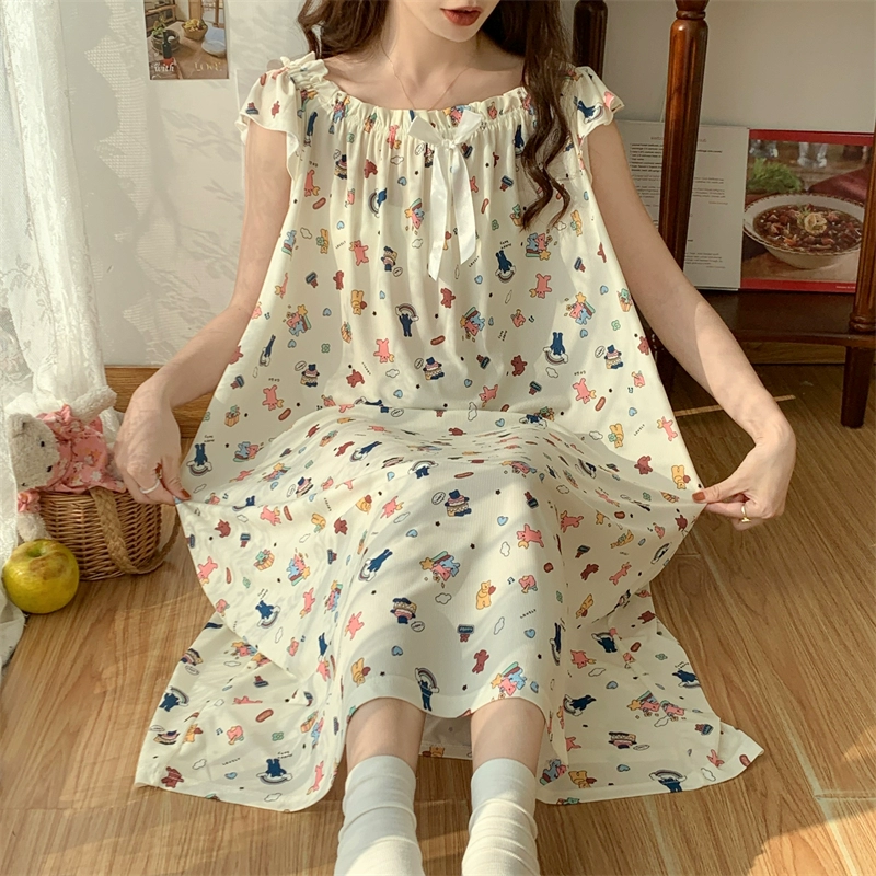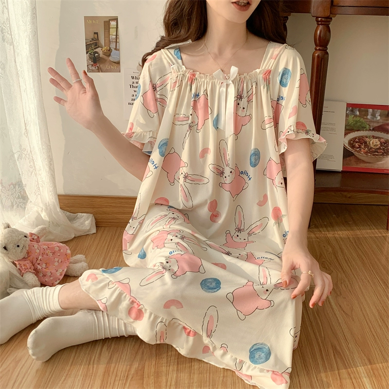 | nameOriginal | Large size nightgown for women summer thin cool ice silk fat girl 200 pounds large size cute cartoon student nightgown dress |