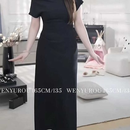 Large size one-shoulder dress for women 2024 summer new design slimming and flesh-covering sexy off-shoulder skirt