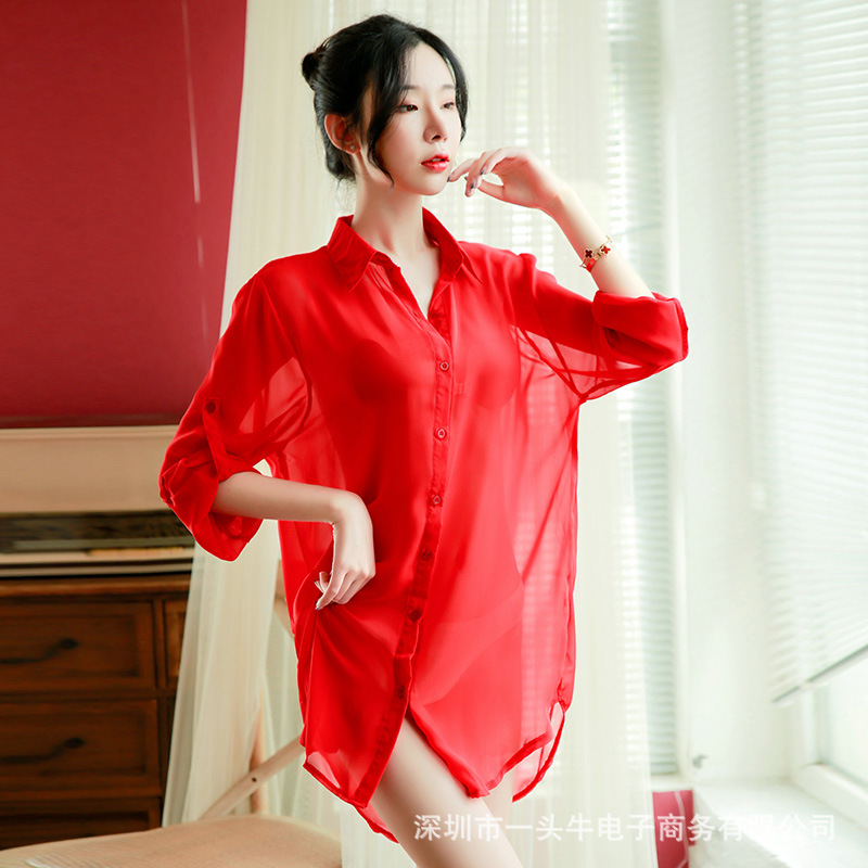 | nameOriginal | Large Size Pajamas Summer Chiffon Sexy Temptation White Shirt Women's Mid-Length Transparent Nightgown Long-Sleeved Plus Size |