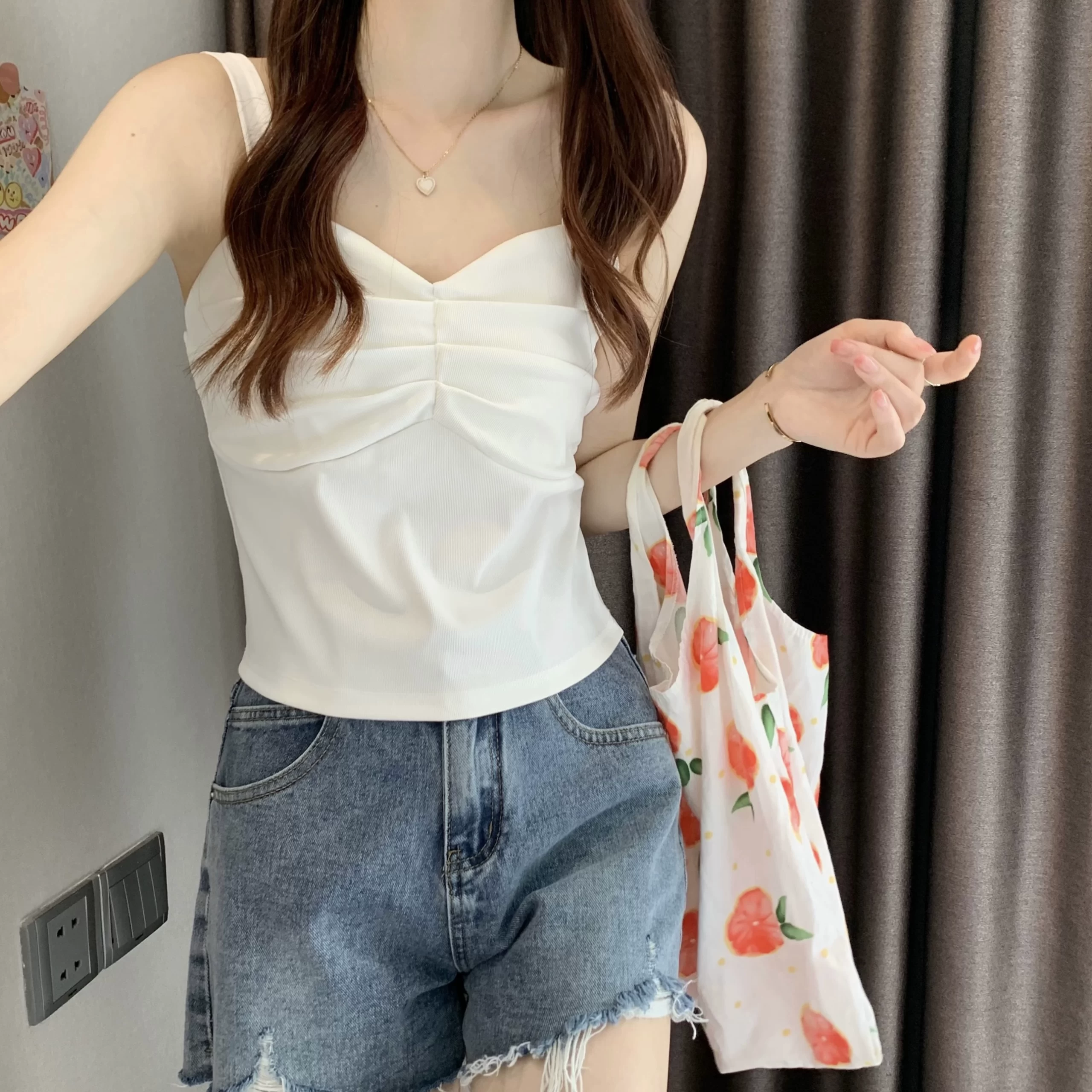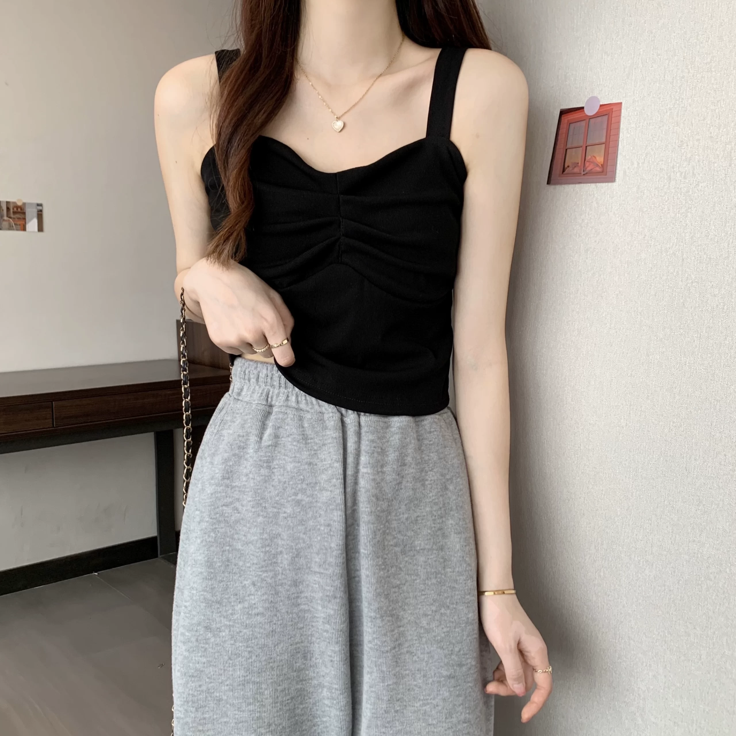 | nameOriginal | Large size pleated solid color slim fit V-neck camisole |