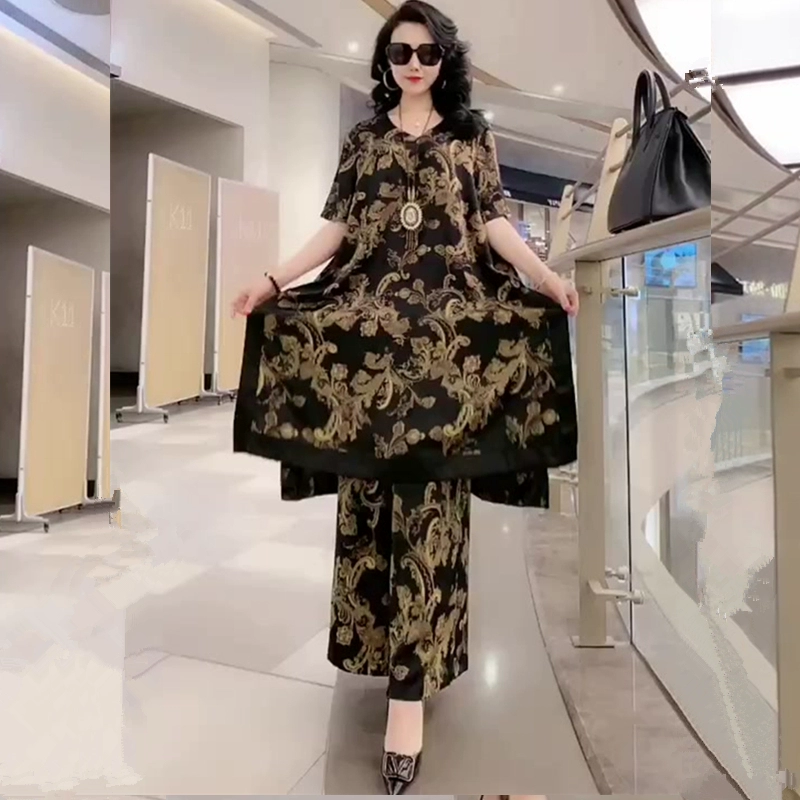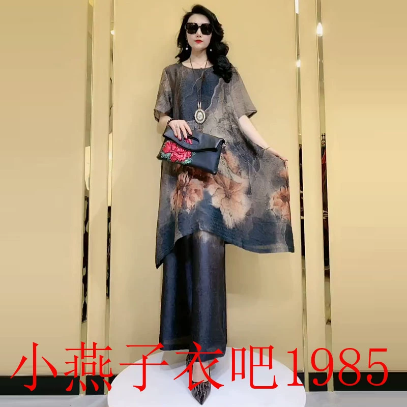 | nameOriginal | Large size printed mulberry silk wide leg pants fashion suit |
