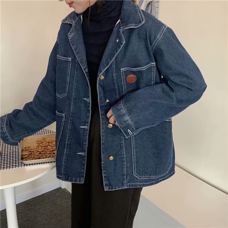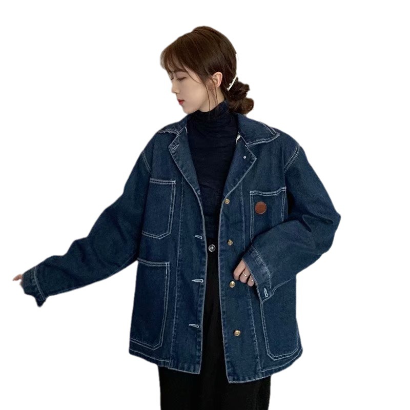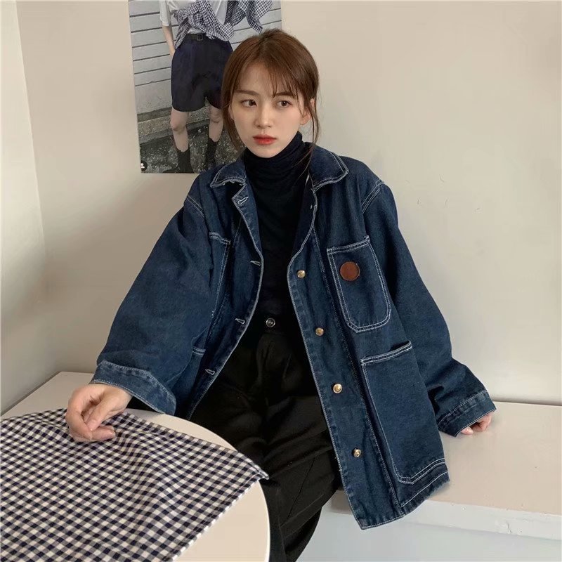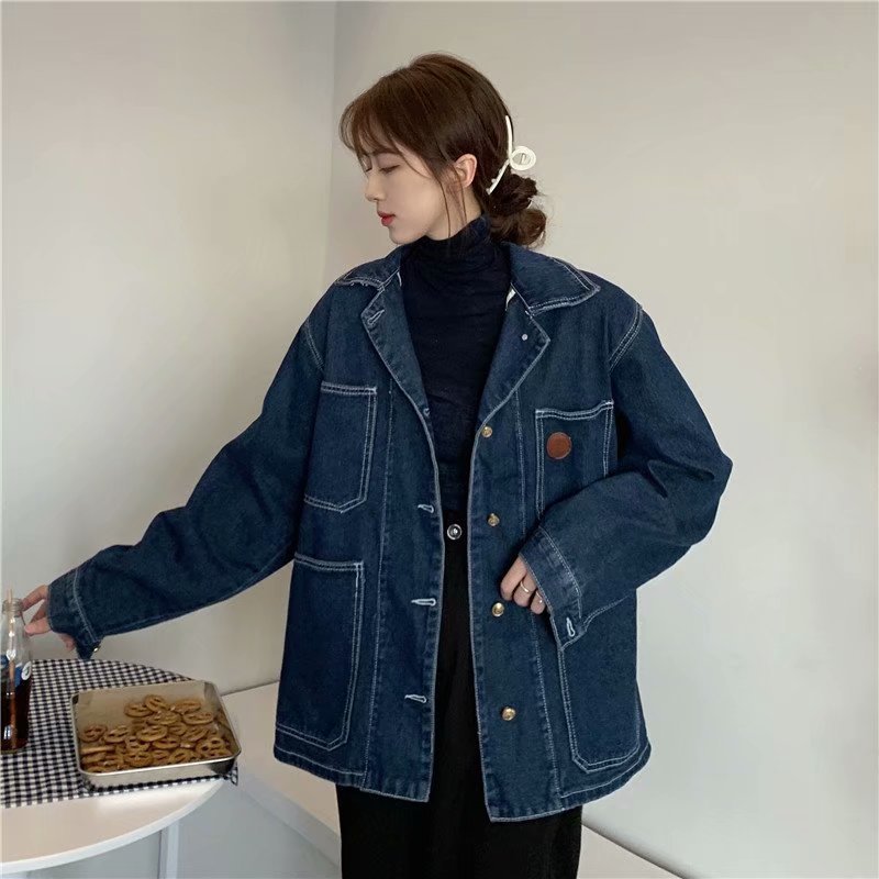 | nameOriginal | Large Size Retro Dark Blue Denim Coat Women's Chubby Girls Autumn New Ins Korean Loose Long-sleeved Jacket Top T |