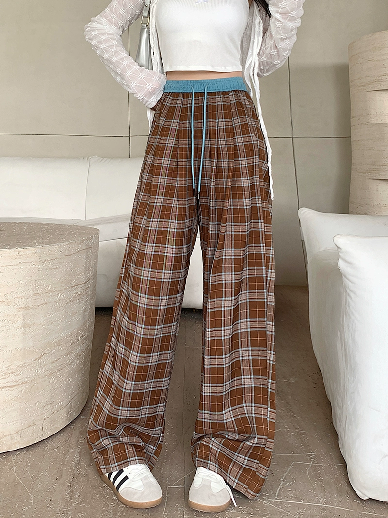 | nameOriginal | Large size retro plaid high waist fat mm floor mopping casual pants |