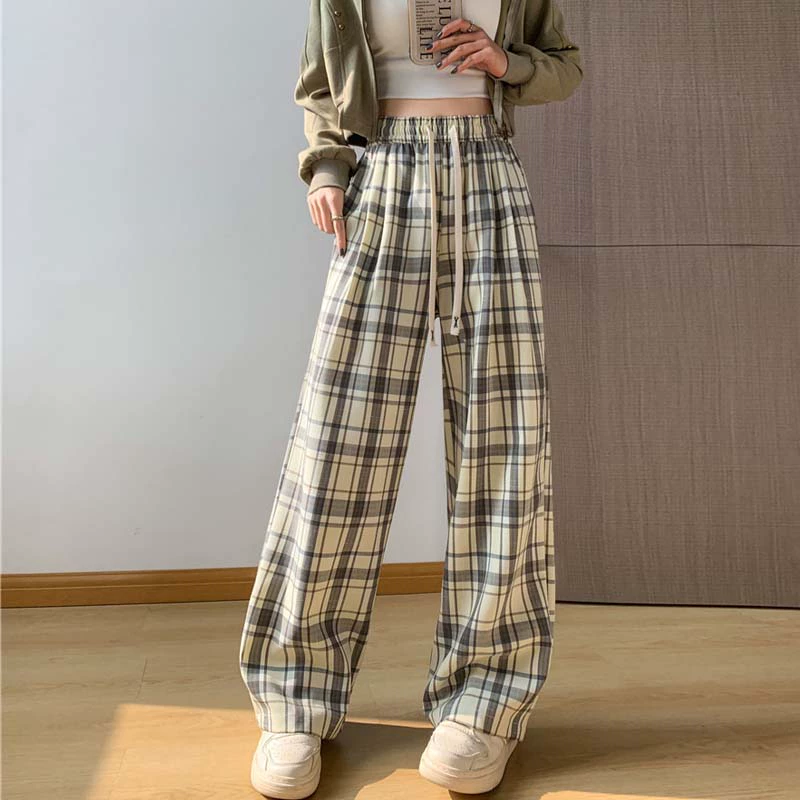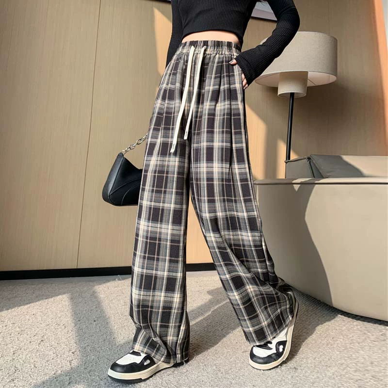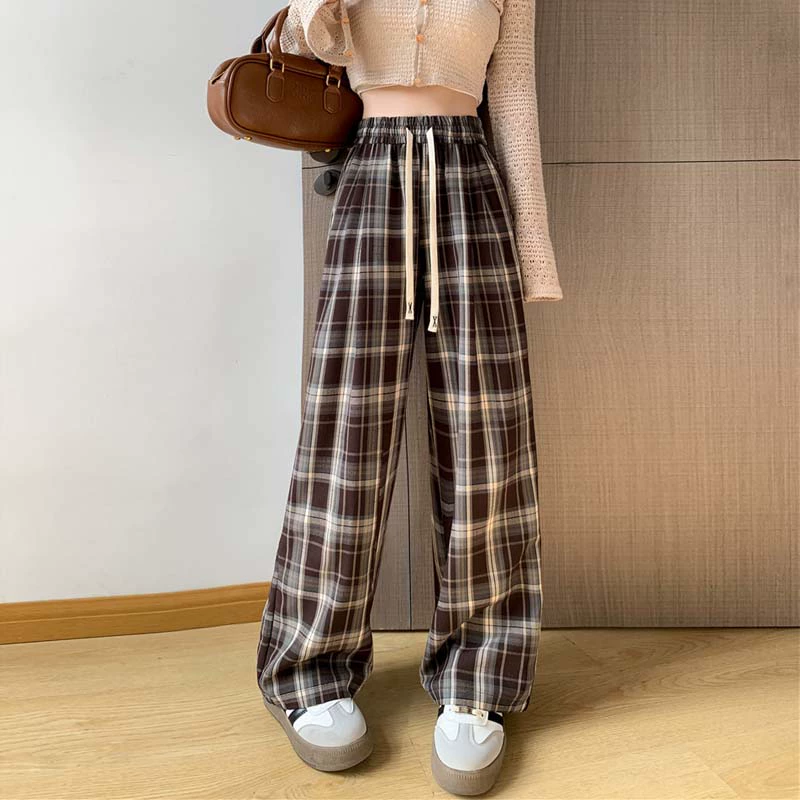 | nameOriginal | Large size retro plaid spring high waist fat MM casual pants |