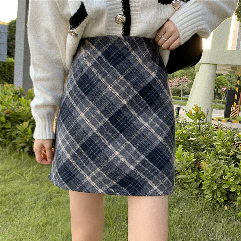 | nameOriginal | Large size retro plaid woolen hip-hugging fat mm skirt |