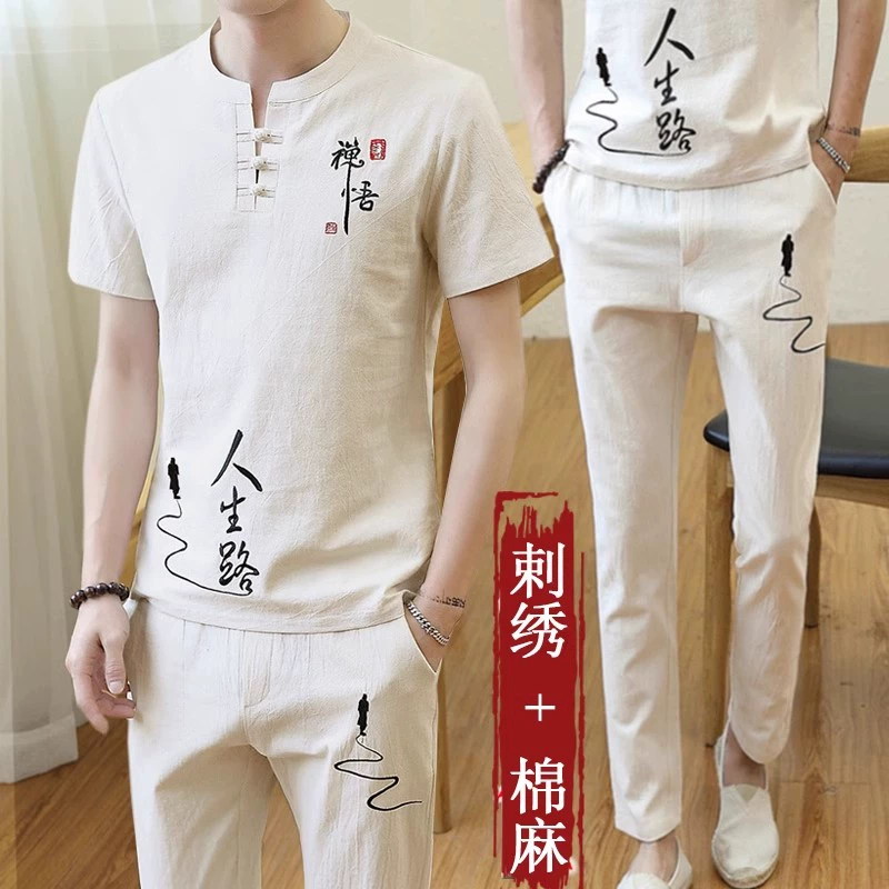 | nameOriginal | Large size short-sleeved t-shirt casual embroidered two-piece linen set |