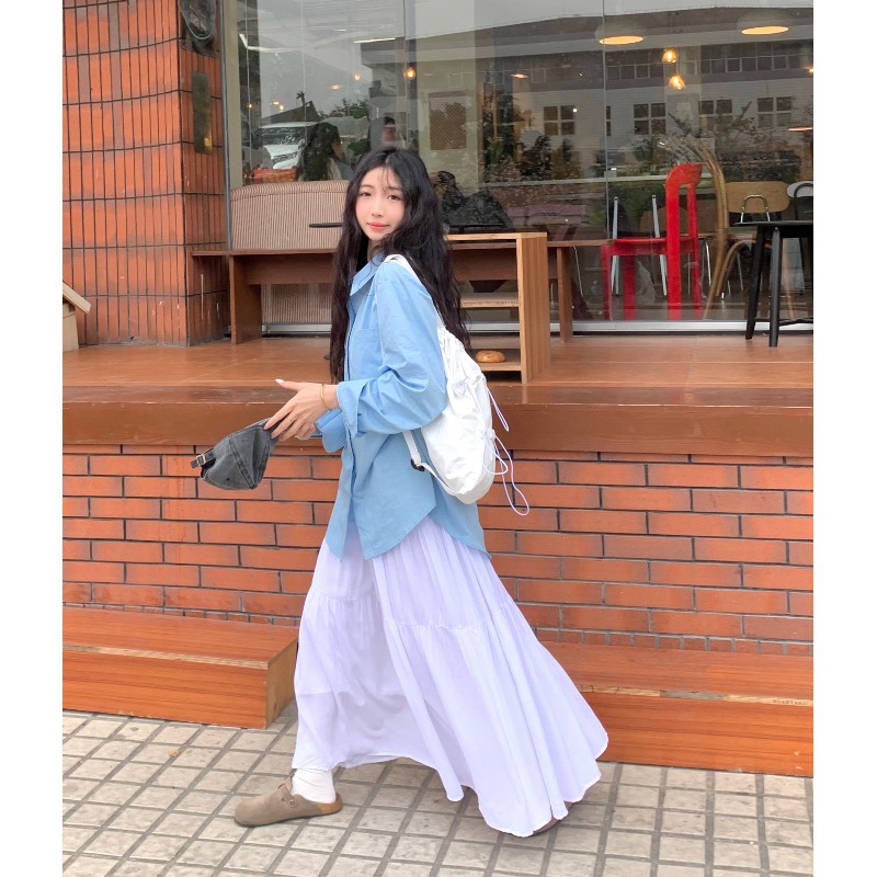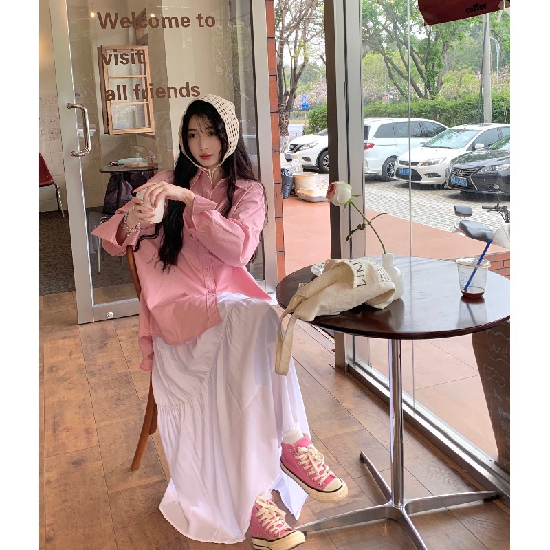 | nameOriginal | Large Size Spring Women's Suit Lazy Style Mid-length Long-sleeved Shirt High Waist Slimming A- line Pleated Skirt Two-piece Set |