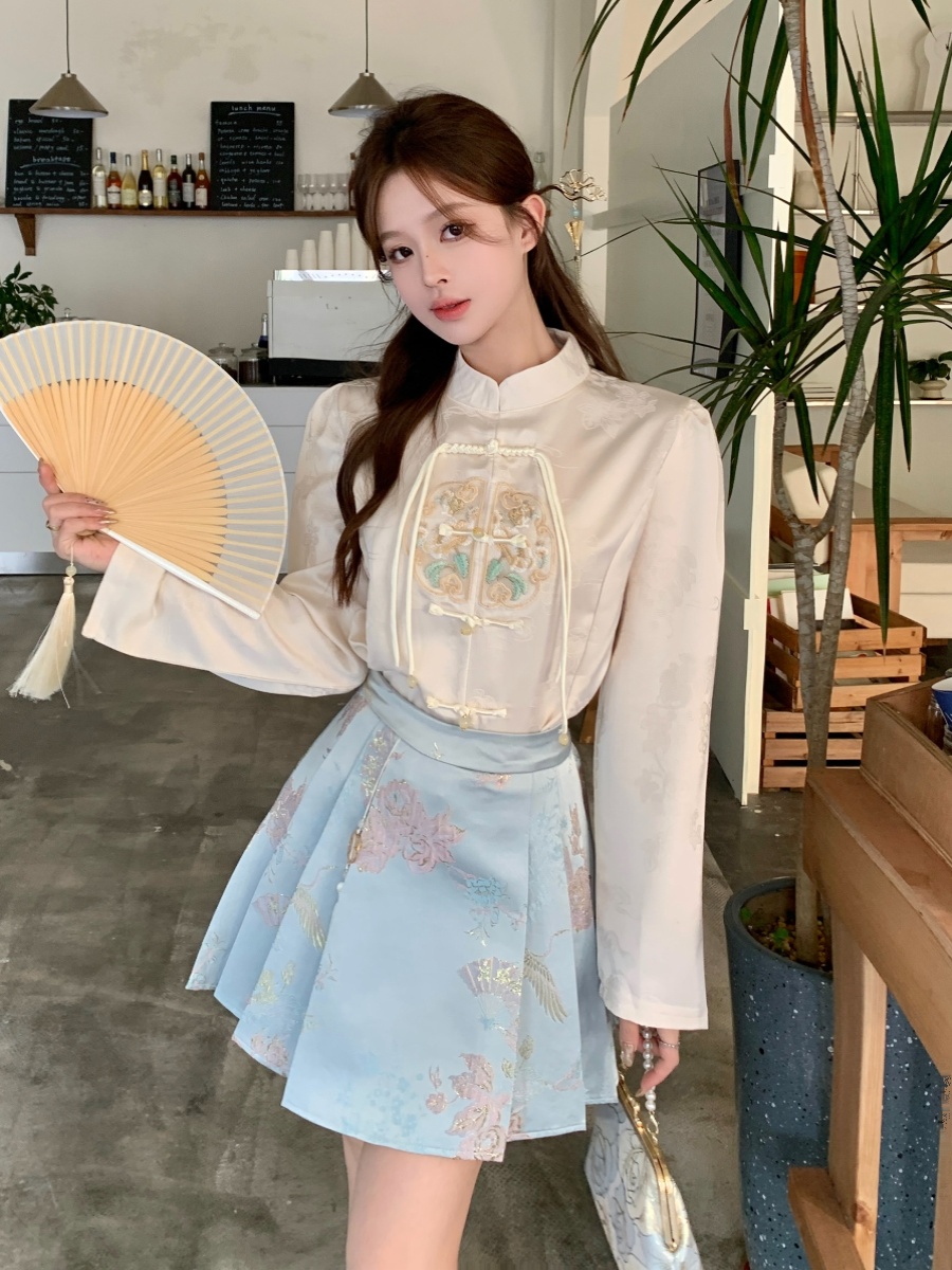 | nameOriginal | Large size stand collar Chinese element pleated skirt top |