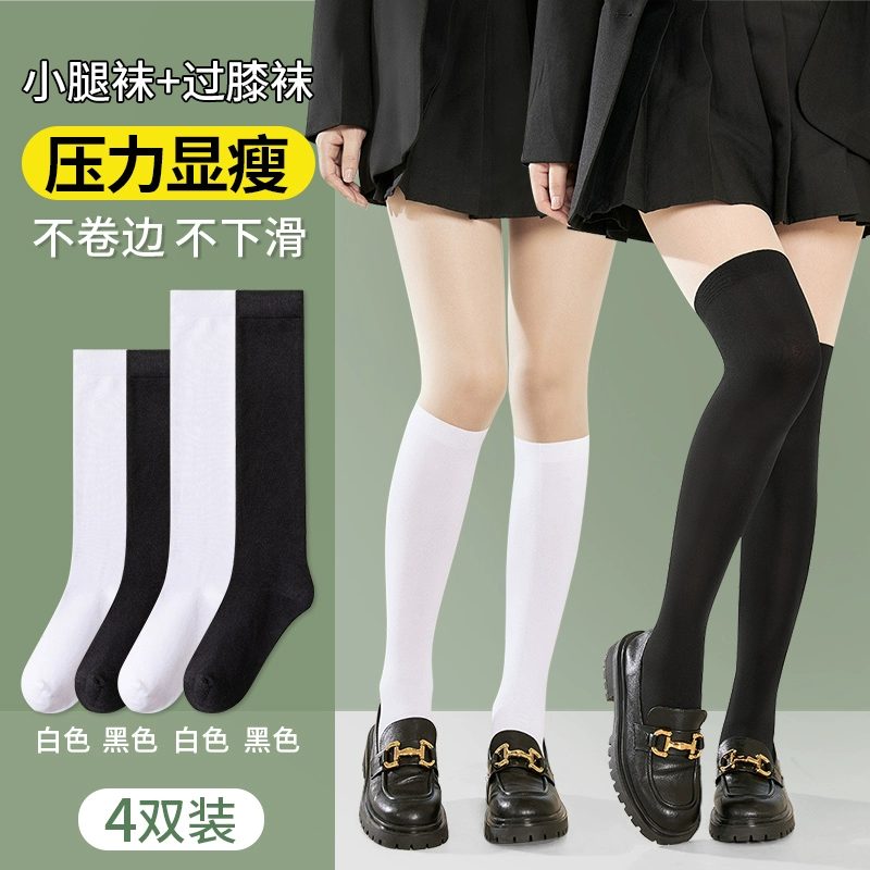 | nameOriginal | Large size stockings for women summer JK student calf socks 200 pounds fat mm high tube black and white spring and autumn over-the-knee socks |