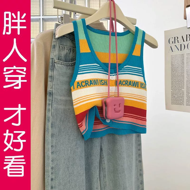 | nameOriginal | Large size striped v-neck dopamine fat mm small suspender belt |