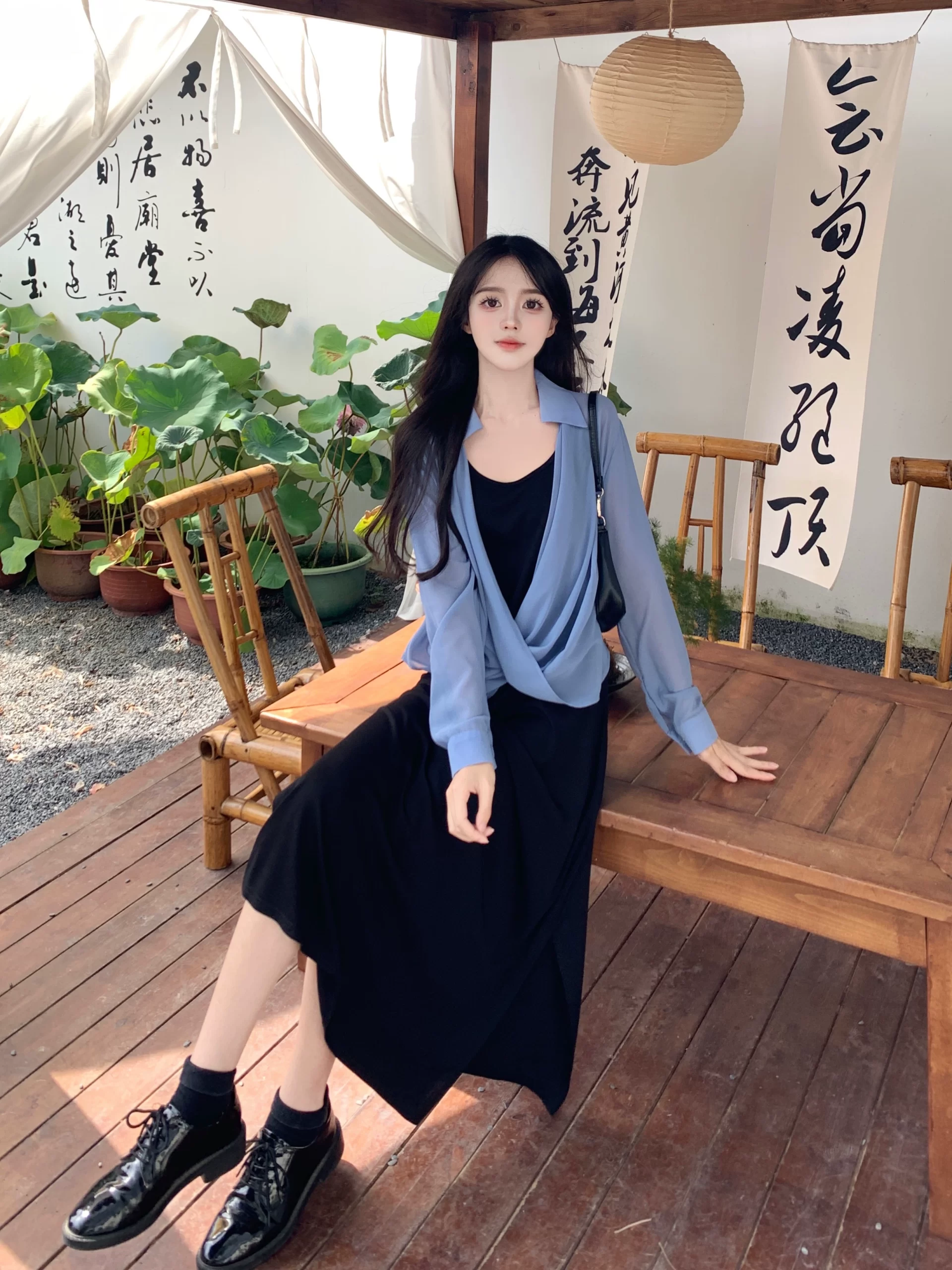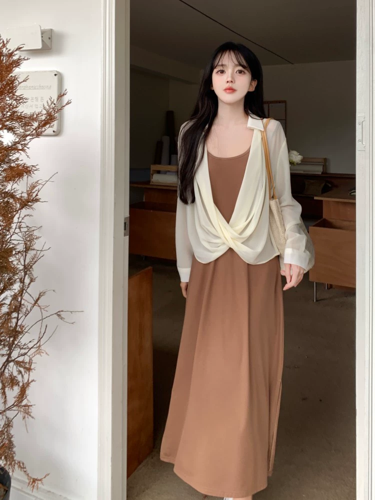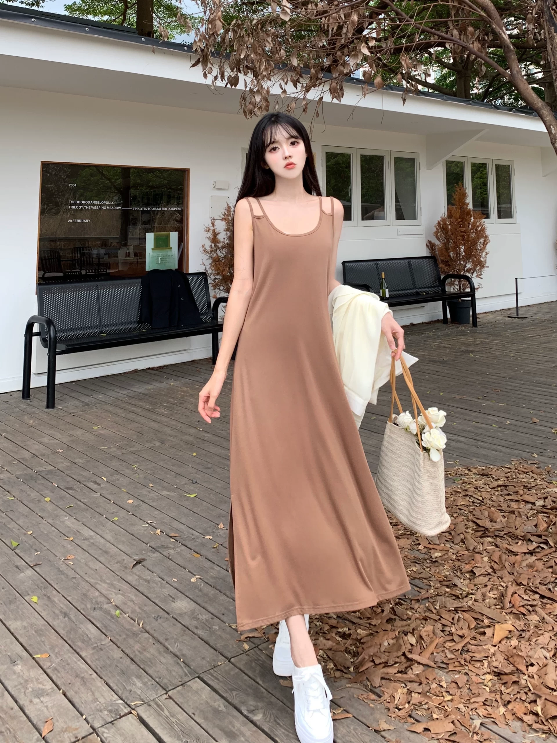 Large size suspender skirt in spring and summer, high-end, fat mm looks slim and covers the belly, wear a blouse, cardigan, and wear a flesh-covering dress