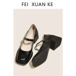 nameOriginal | Large size thick heel single shoes for women 41 to 43 square toe shallow mouth spring and autumn all-match medium heel Mary Jane shoes with high heels |