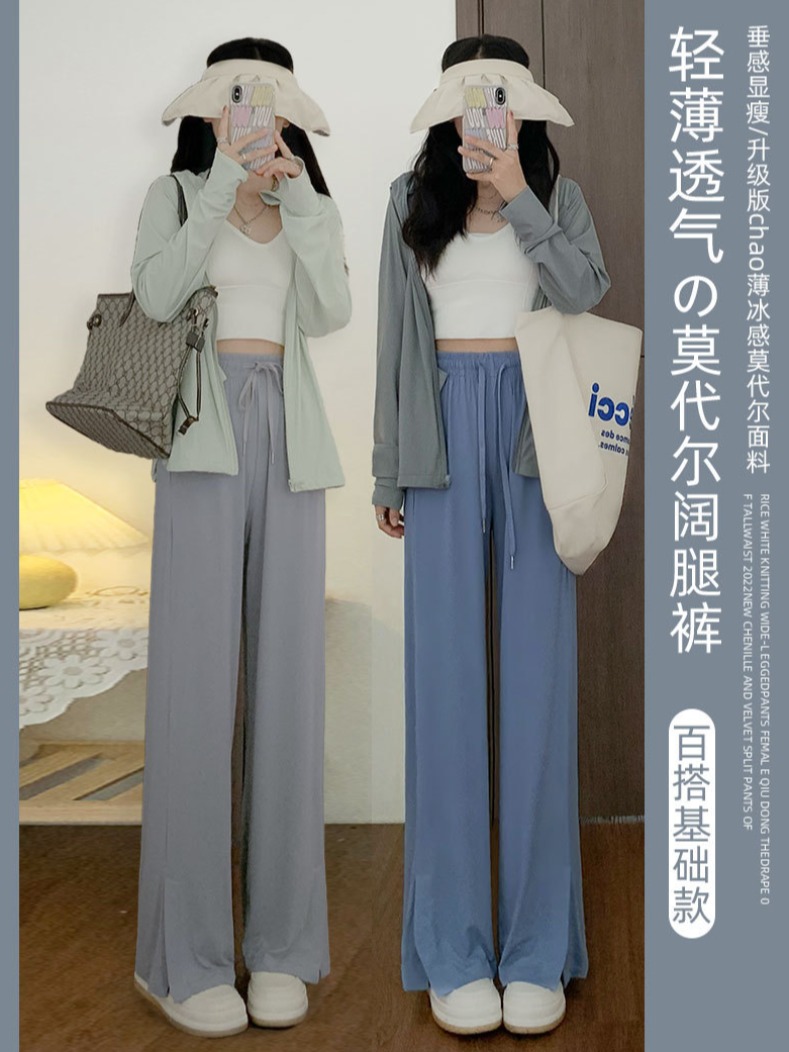 | nameOriginal | Large size thin ice silk slit high waist trousers for fat girls |