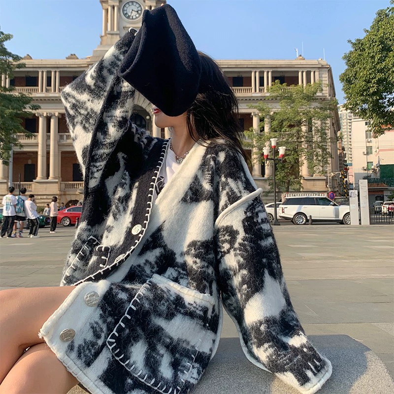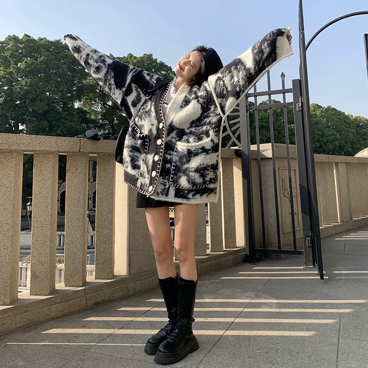 | nameOriginal | Large size tie-dyed sweater cardigan coat for women 2024 spring and autumn thickened retro lazy style v-neck loose knitted top |