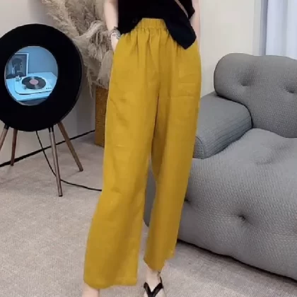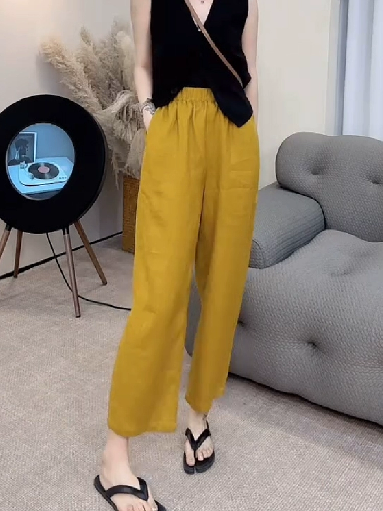 | nameOriginal | Large size ultra-thin high waist fat mm loose cropped linen pants |
