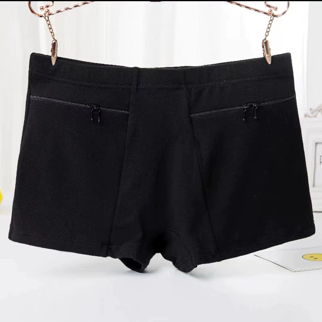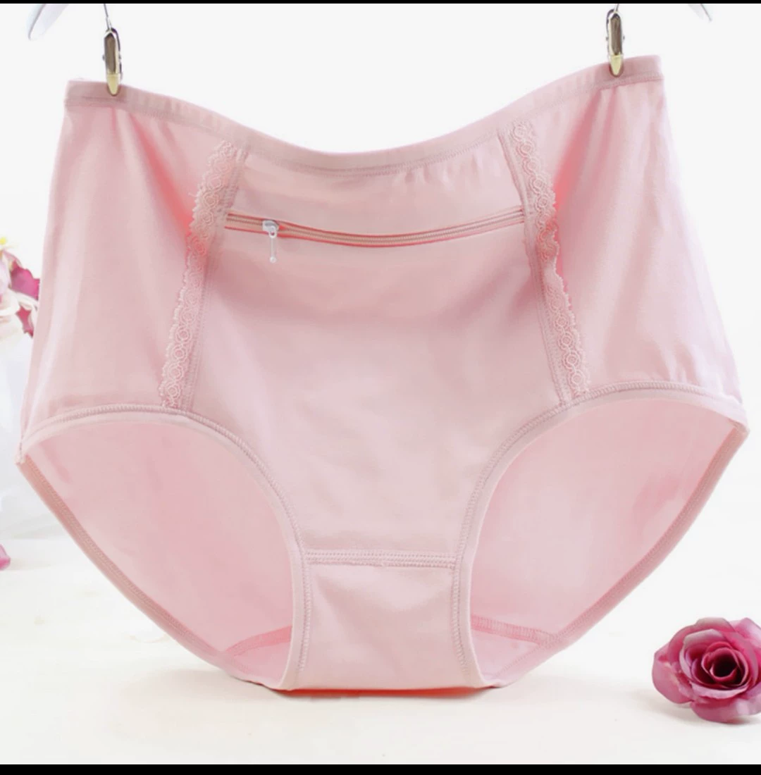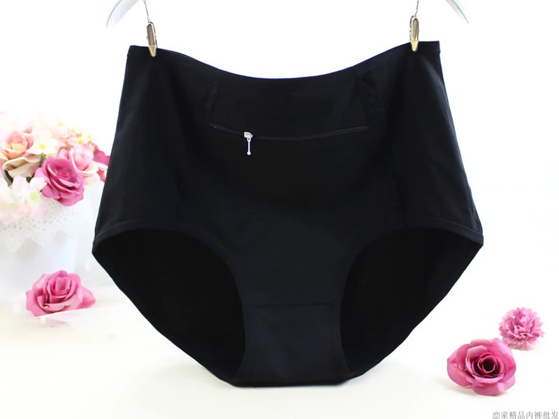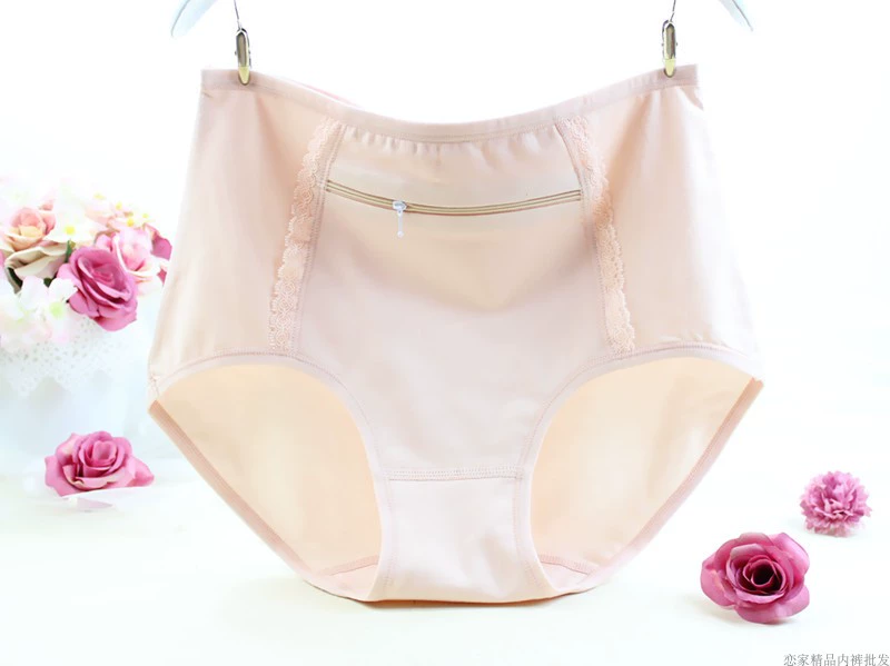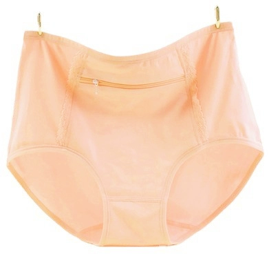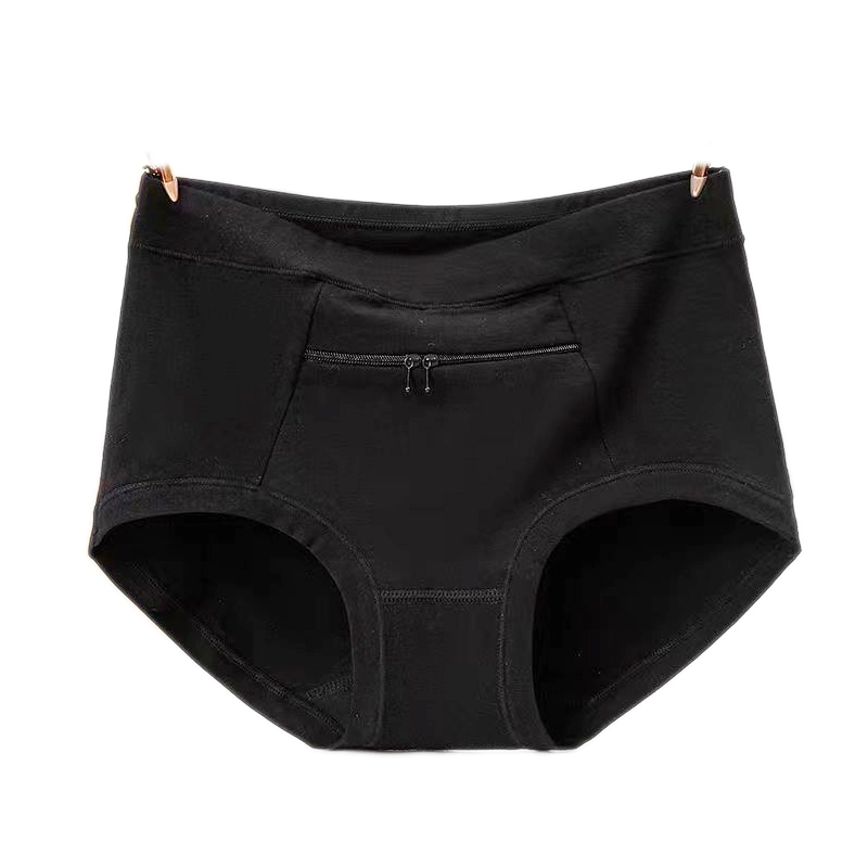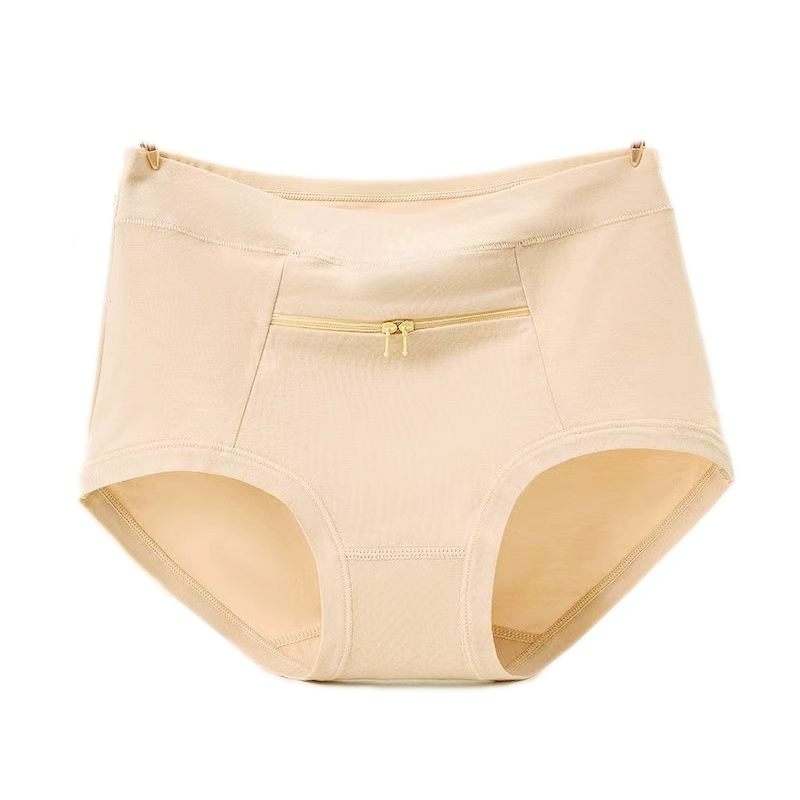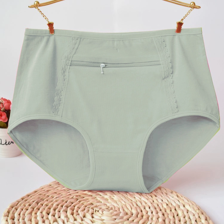 Large size underwear with pocket zipper anti-theft pure cotton women middle-aged and elderly modal pocket mother's mid-waist women's briefs